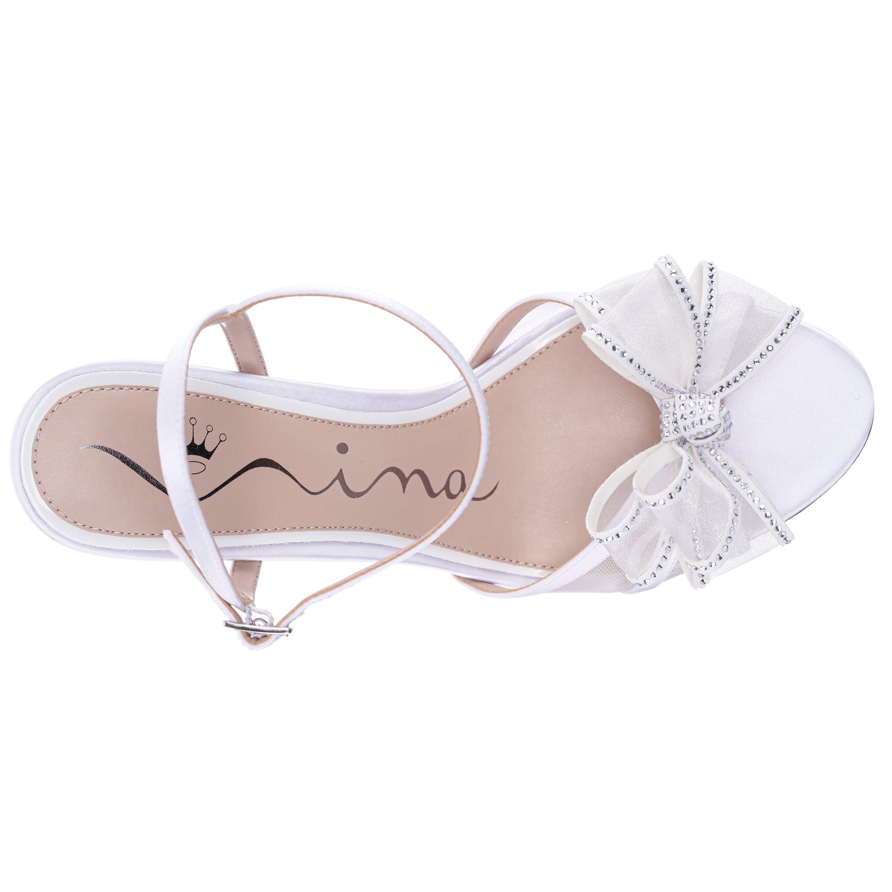 Romance is in the air when you wear VAYDA by Nina Shoes. To compliment a glamorous ensemble or add a feminine twist to a tailored look, this alluring sandal features an adjustable ankle strap for a secure fit. Perched on a high heel, this style showcases an enchanting bow edged with twinkling crystals, framing a rhinestone-encrusted center knot centerpiece. Whether in luxurious satin or shimmering metallics, every step in VAYDA will feel like a fairytale moment.