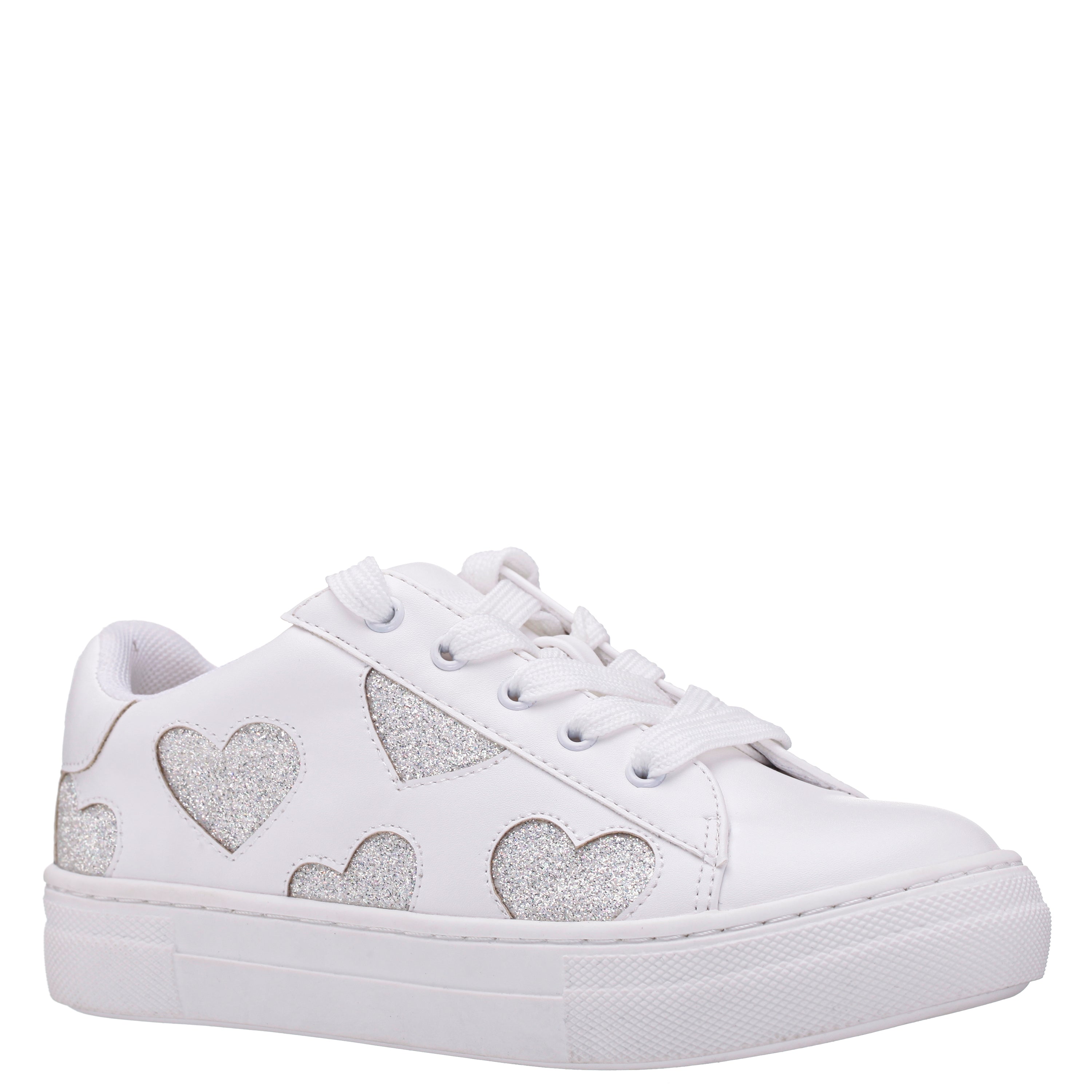 WHITE LACE UP SNEAKERS WITH HEARTS