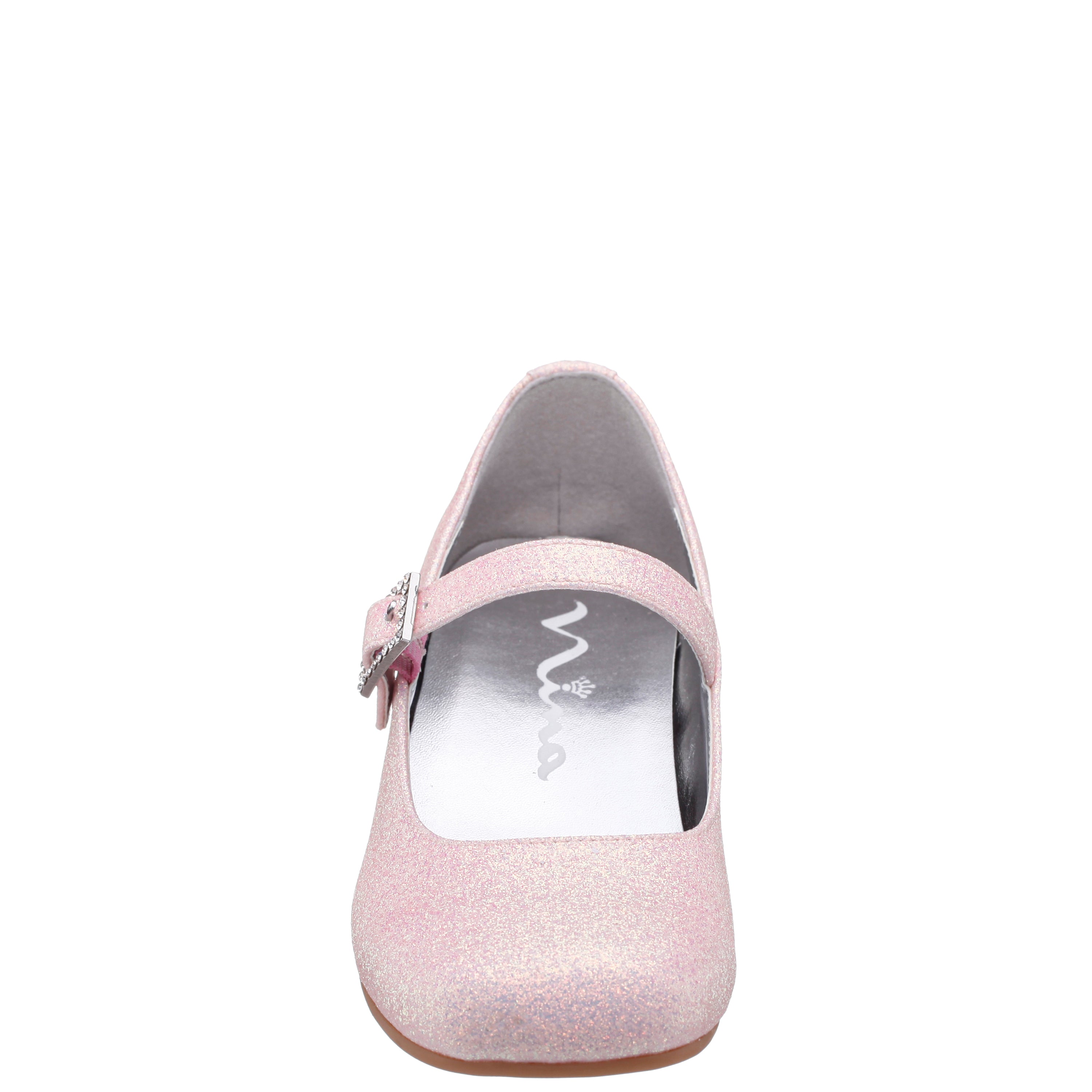 Add a touch of sparkle and sophistication with MILA by Nina Shoes, a classic girls Mary Jane that balances timeless charm with everyday comfort. Designed with a stylish square toe and a shimmering crystal buckle, this polished flat brings elegance to both special occasions and dressed-up school days. The adjustable buckle provides a secure fit, while the modest low heel gives her just the right lift. A soft memory foam insole and flexible non-slip sole ensure she’ll stay comfortable from morning to night.