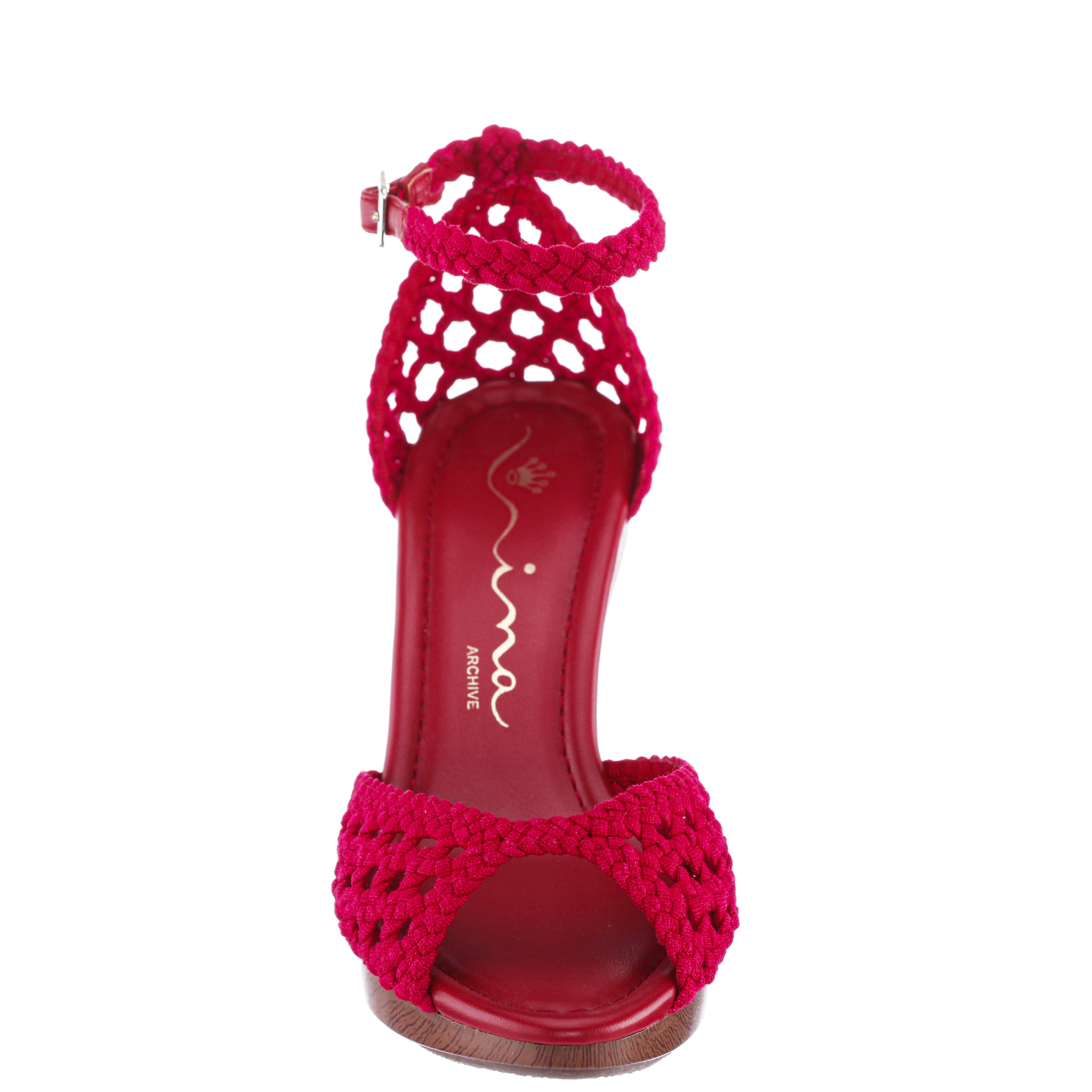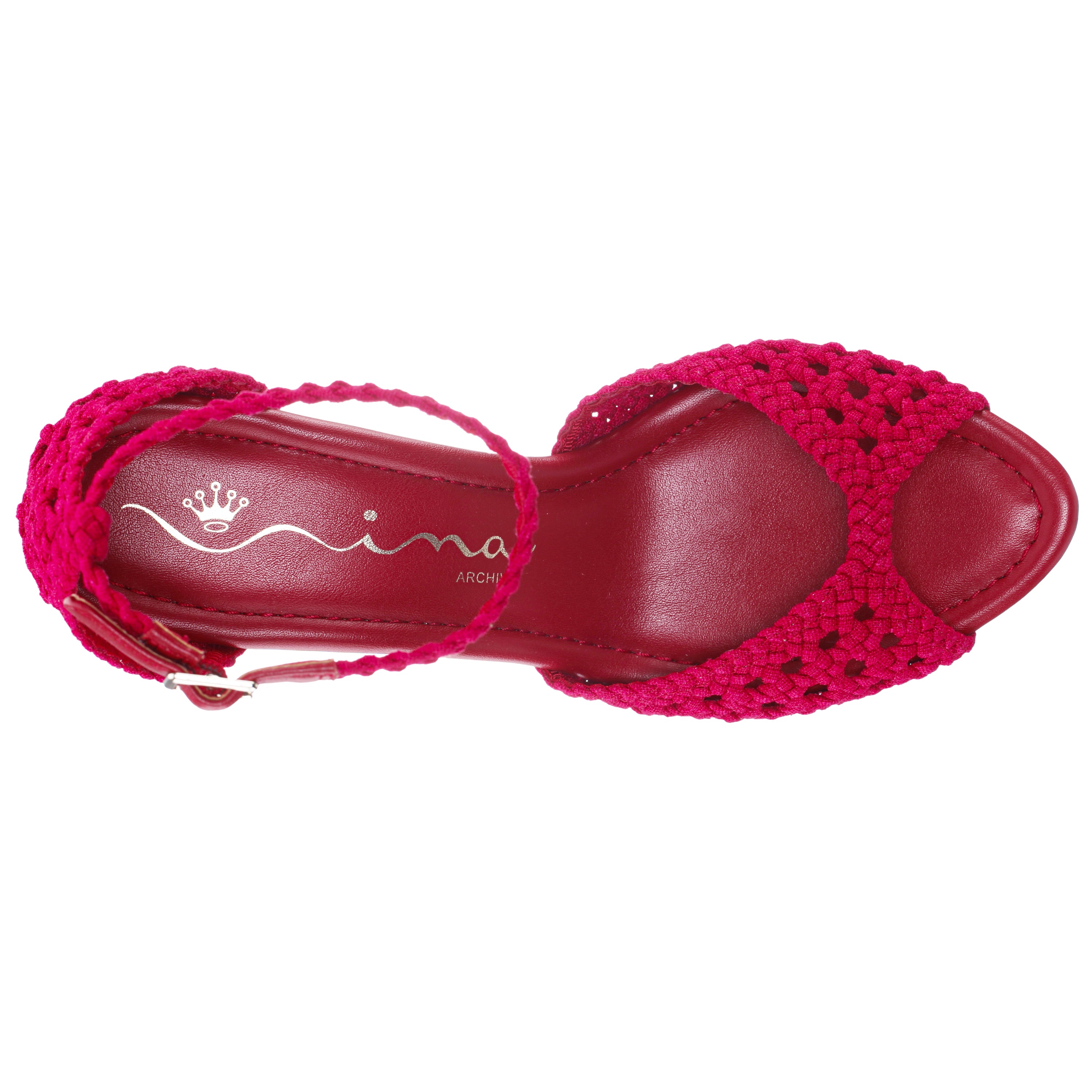 AVENUE by Nina Shoes – Limited run! For work or play, the soft handwoven open basket weave molds to your foot, offering comfort with a touch of artisanal craftsmanship. The subtle texture of linen and rich vegetable-dye colors enhance the versatility of this flattering ankle-strap sandal with a closed back. An adjustable buckle with elastic ensures a secure fit, while the faux stacked rocker bottom with a non-slip rubber insert provides stability. Style it with a shirtdress or skinny jeans for effortless sophistication.