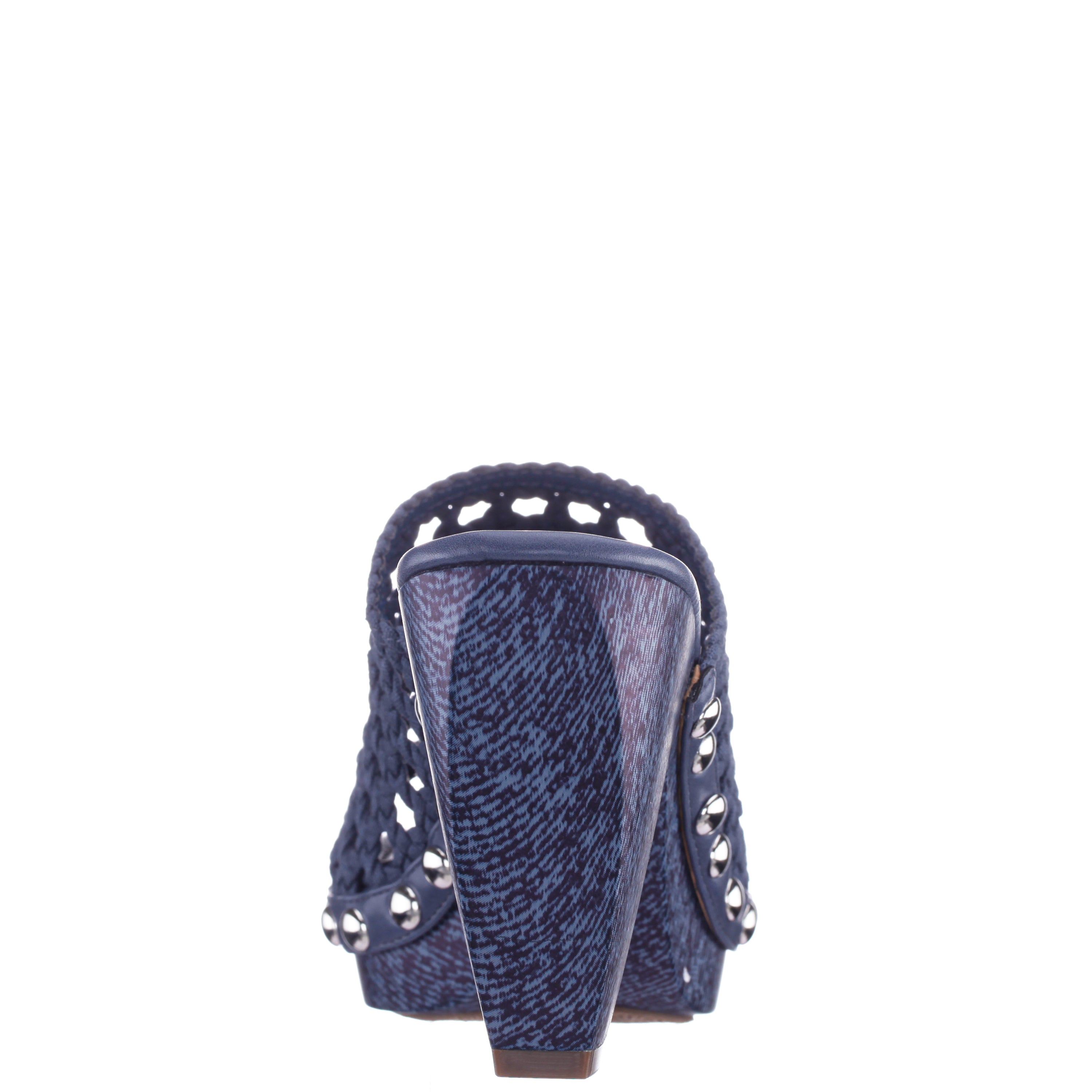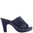 INDIGO SLIP ON HIGH-HEEL PLATFORM SANDALS