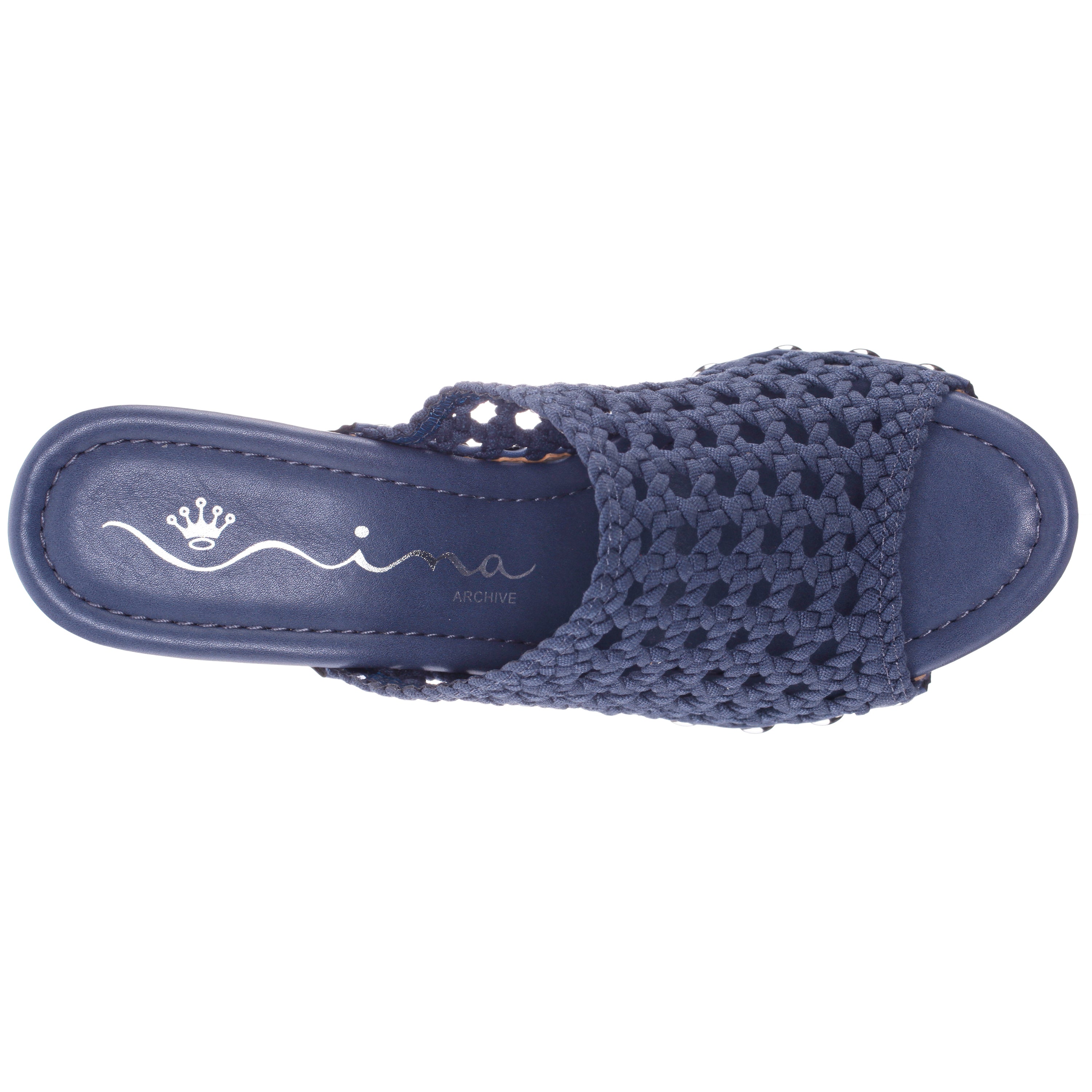 URSULA by Nina Shoes – Limited run! Slide into this easy-breezy basket weave, handmade in canvas for a lightweight, natural feel. Designed on a faux stacked rocker bottom, this effortlessly stylish sandal features a full memory foam insole for superior comfort. Whether you're stepping out or lounging at home, the URSULA is sure to become your "wear-with-everything" sandal—just leave them by the foot of your bed!