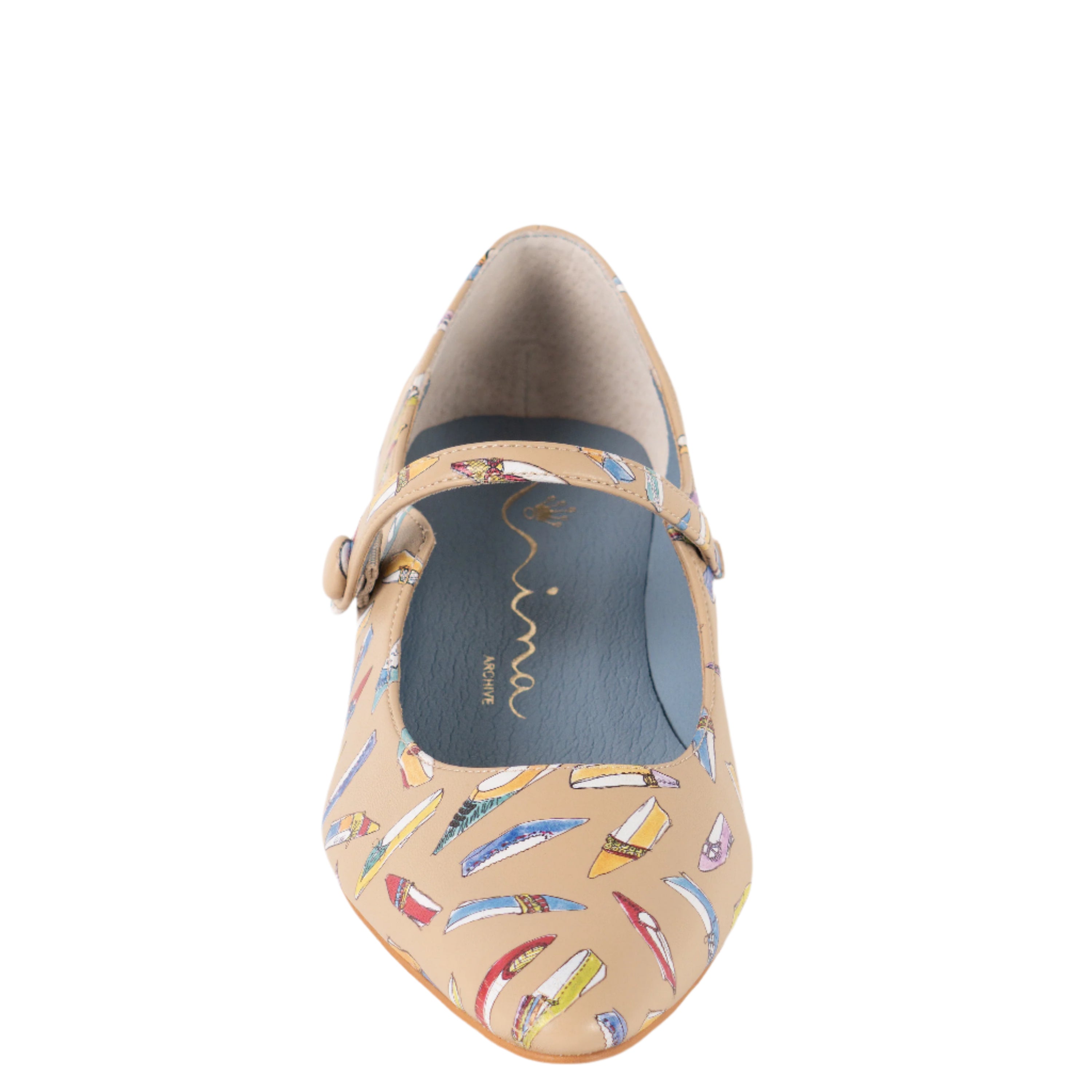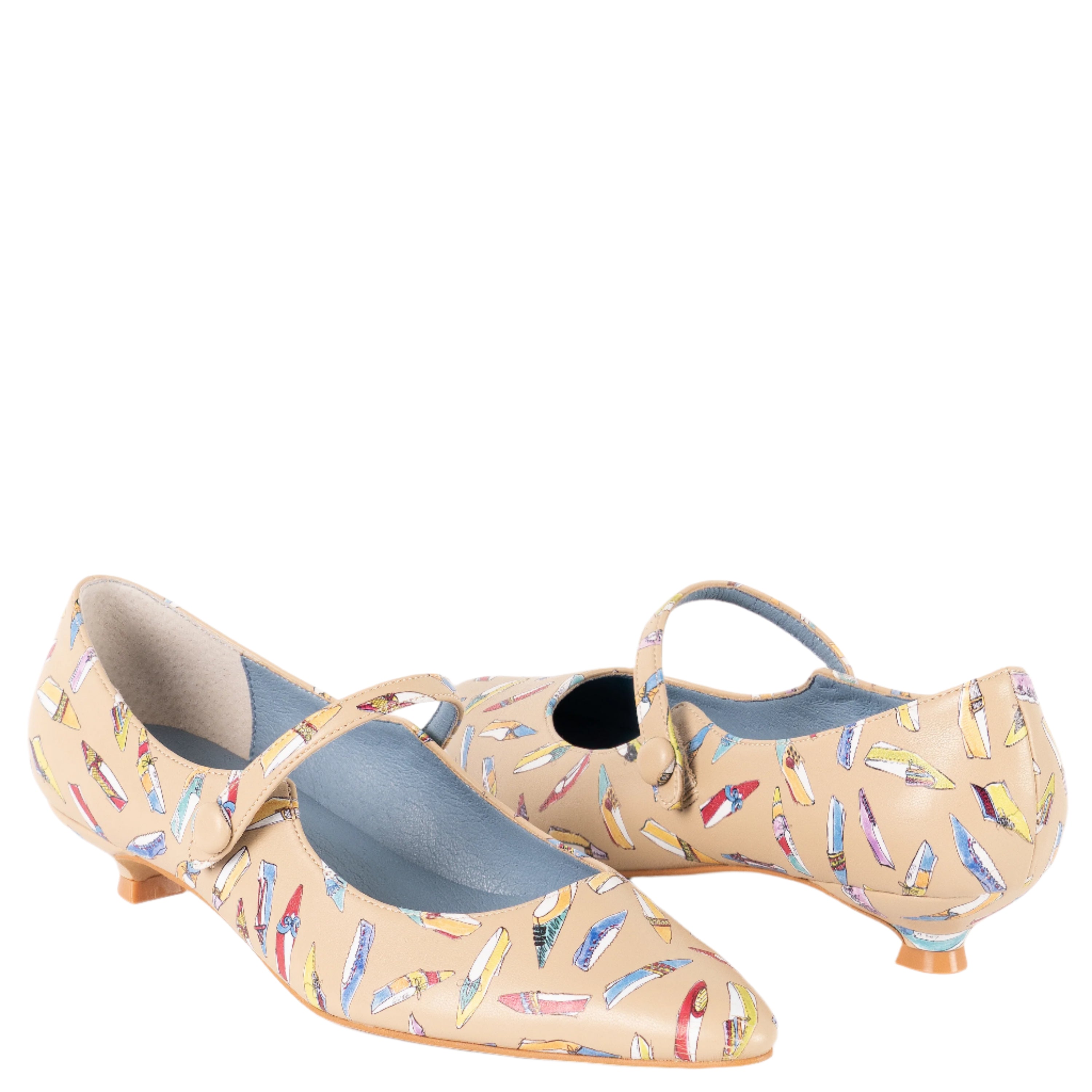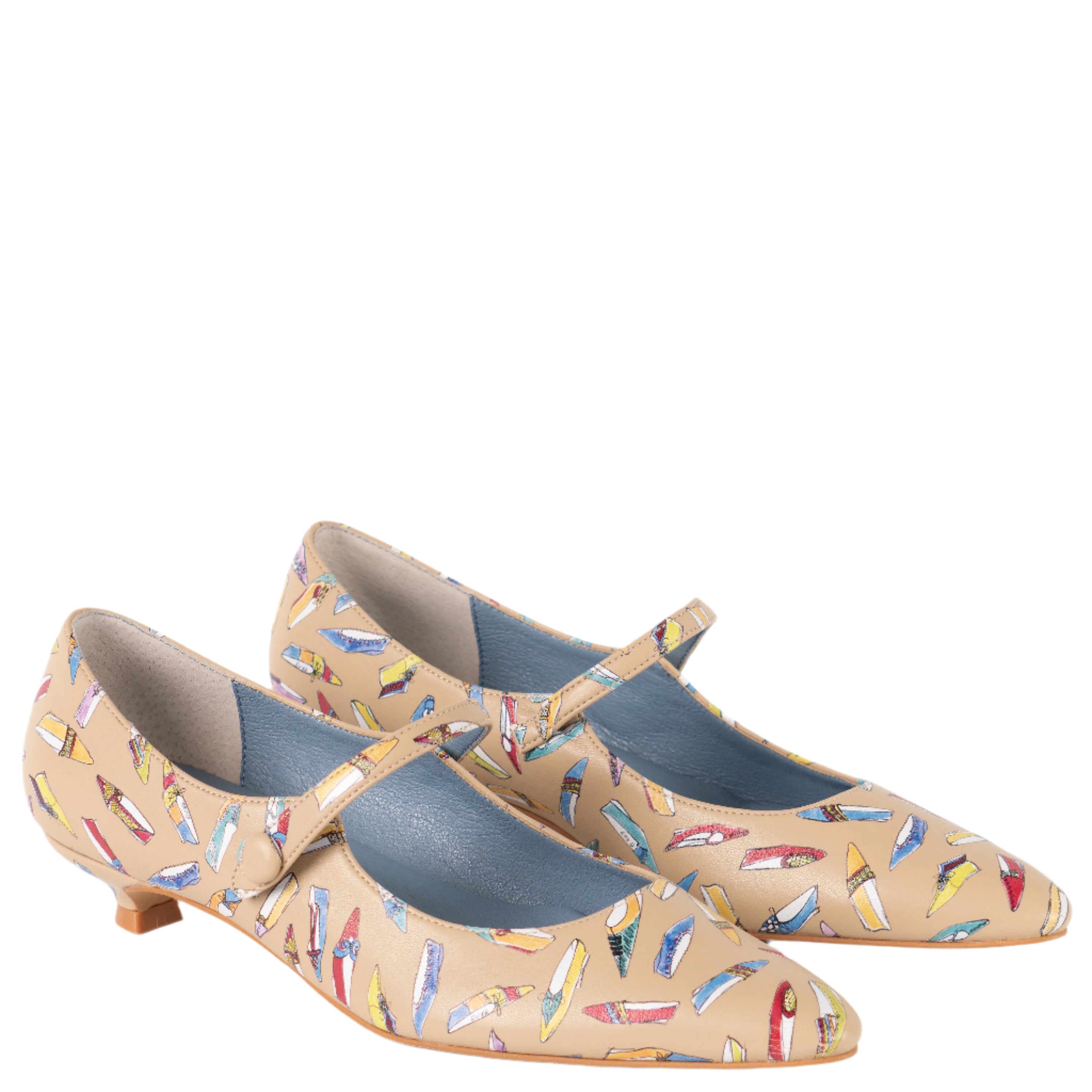 CHIC Mary Jane Low Heel Shoes From our exclusive archive collection, the CHIC Mary Jane marries today’s instep strap style with Nina’s vintage-inspired charm. The matching covered button with hidden elastic & snap allows for easy slip-on and a secure, comfortable fit. Totally on trend, in modern, shiny patent colors or in our whimsical print, featuring tiny, original designs & sketches from the 1960’s. The almond-shaped toe and curvy lines, paired with a romantic low heel, measuring 1-1/8" (30mm), provide just the right amount of lift for day-long wear, whether you’re strolling through the city or dancing the night away. These retro low-heel pumps blend timeless elegance with modern comfort, perfect for adding a nostalgic touch to any outfit. The CHIC shoes come in modern shiny Berry and Black patent, as well as our whimsical shoe print featuring tiny sketches & designs from the 1960’s. You can match them effortlessly with your favorite vintage dresses or modern outfits. The synthetic lining ensures a soft feel against your feet, while the durable ABS heel material and composition rubber outsole offer long-lasting stability. Whether you're looking for the perfect vintage shoes to complete your wardrobe or a retro style to pair with modern fashion, CHIC Mary Janes are an elegant choice that will never go out of style.