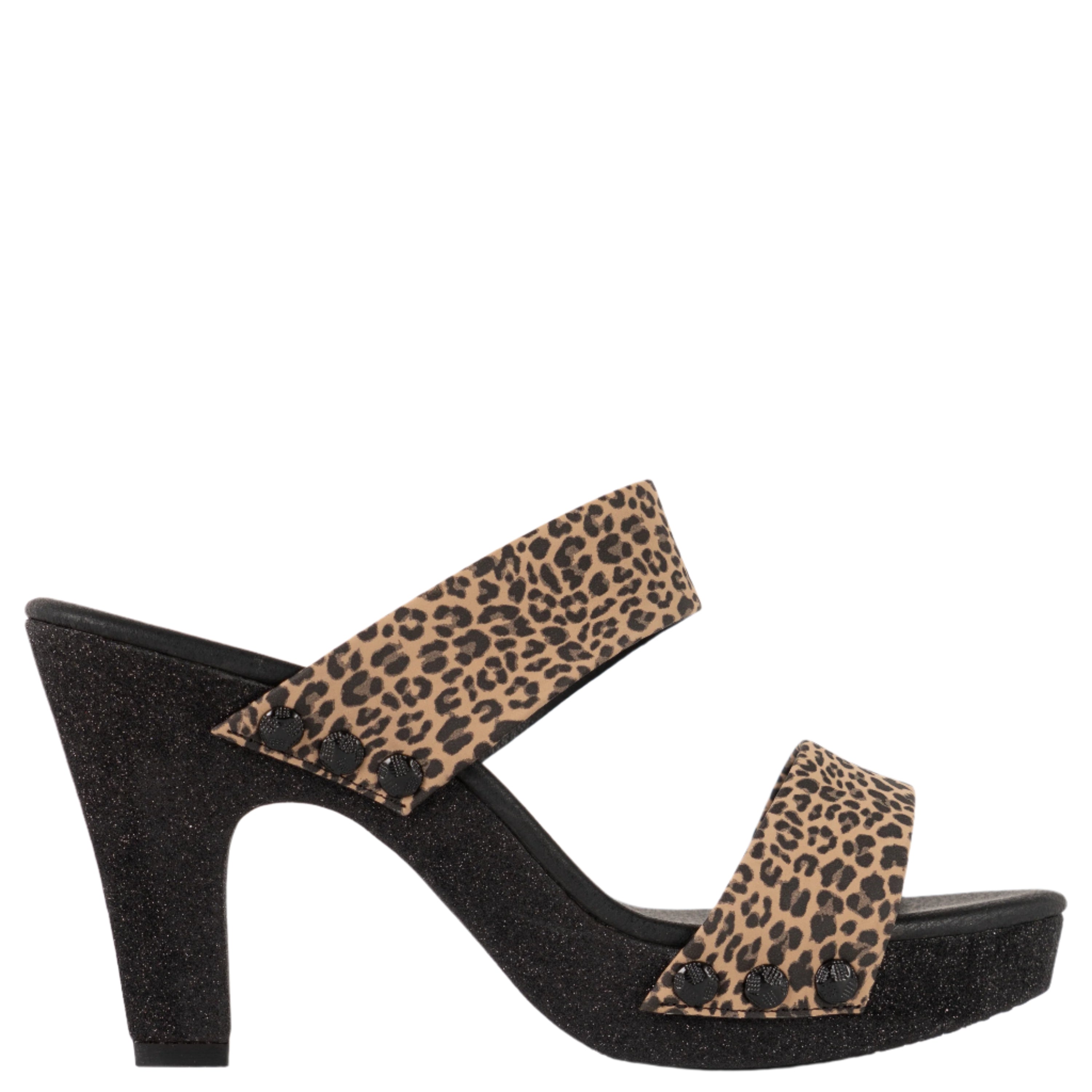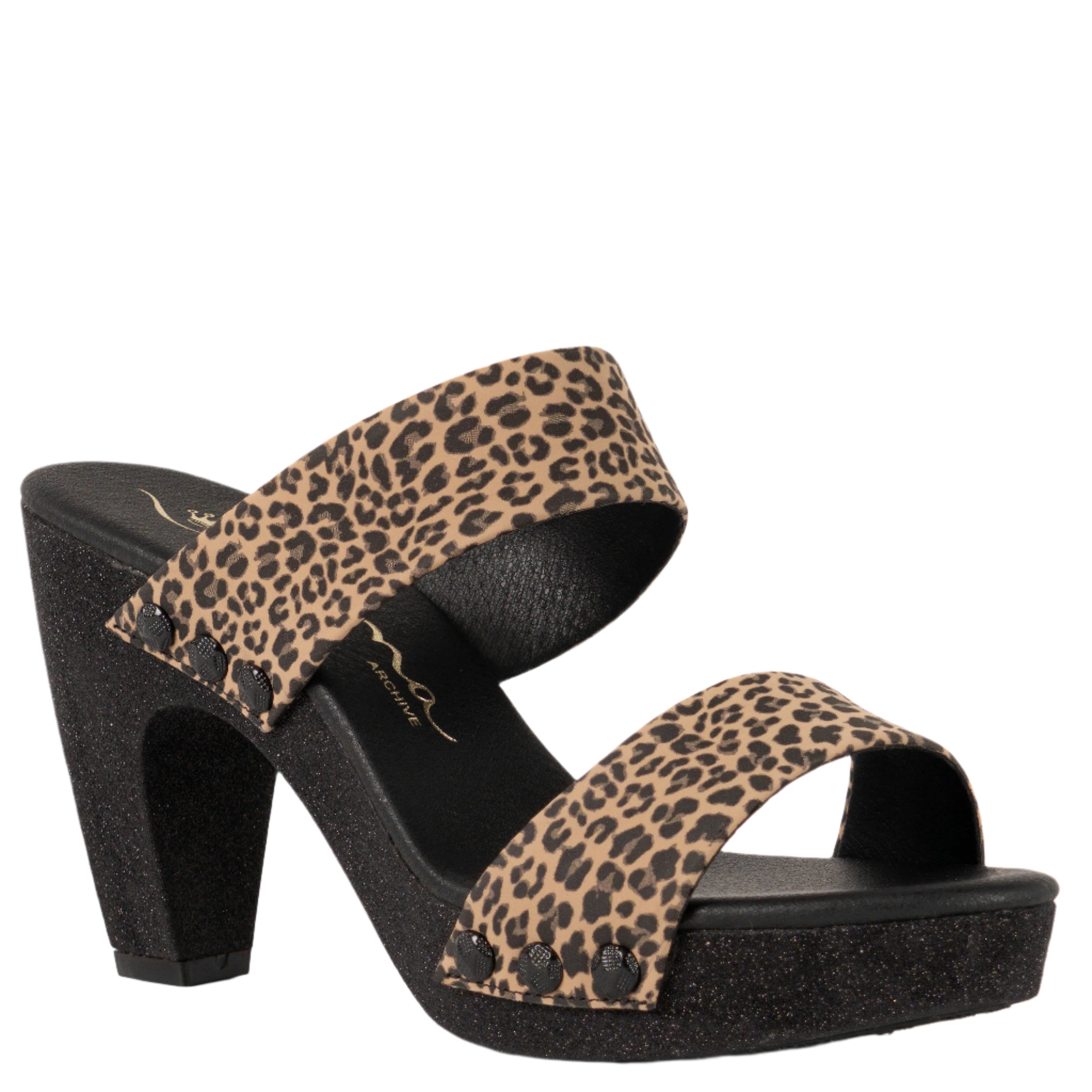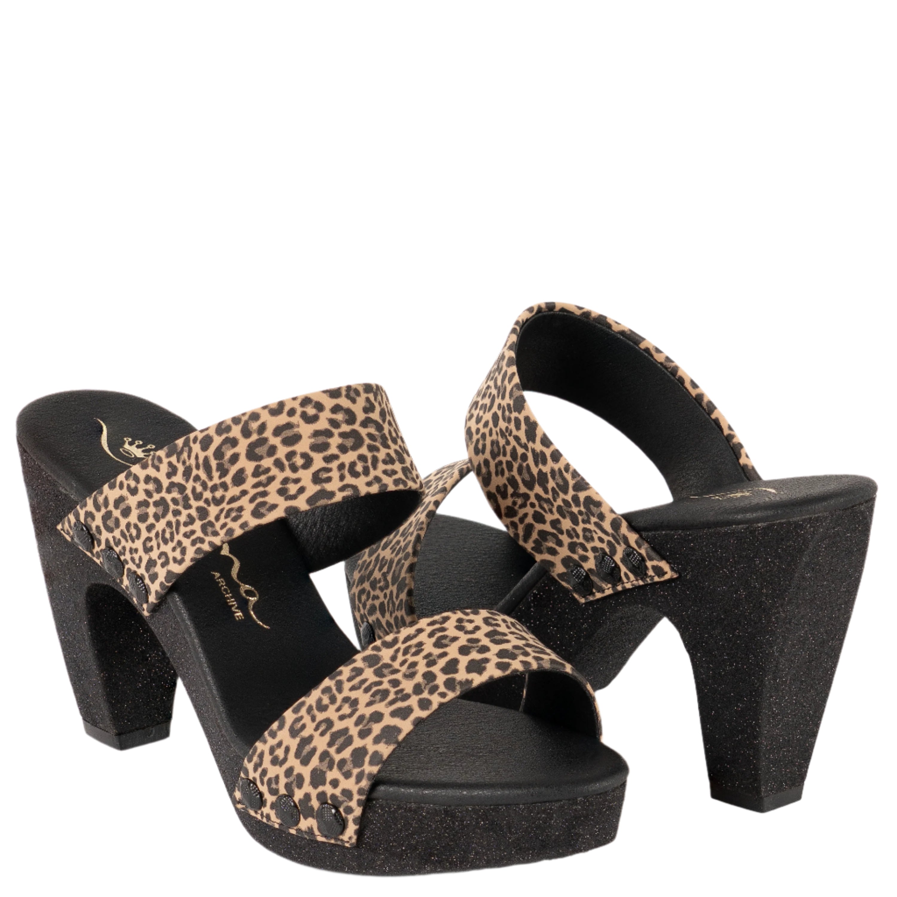 DARK CHEETAH SLIP ON HIGH-HEEL PLATFORM SANDALS
