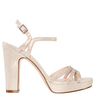 A sandal with disco-style glamour on a soaring stiletto block-heel, Saralyn by Nina is the sandal to be seen in. Available also in wide-widths with dazzling crystal straps that compliment a black-tie dress or fancy denim.Â