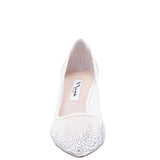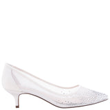 IVORY MESH WITH FACETED CRYSTALS KITTEN-HEEL PUMPS