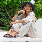Sulma Ankle Strap Flat Shoe The flat sandal, Sulma by Nina Shoes, blends graceful design with everyday practicality, making it a versatile addition to your wardrobe. Its sleek ankle strap and almond-shaped toe lend a refined silhouette, while the cushioned insole ensures lasting comfort. From casual outings to polished occasions, Sulma is the perfect companion for a chic, comfortable look.