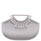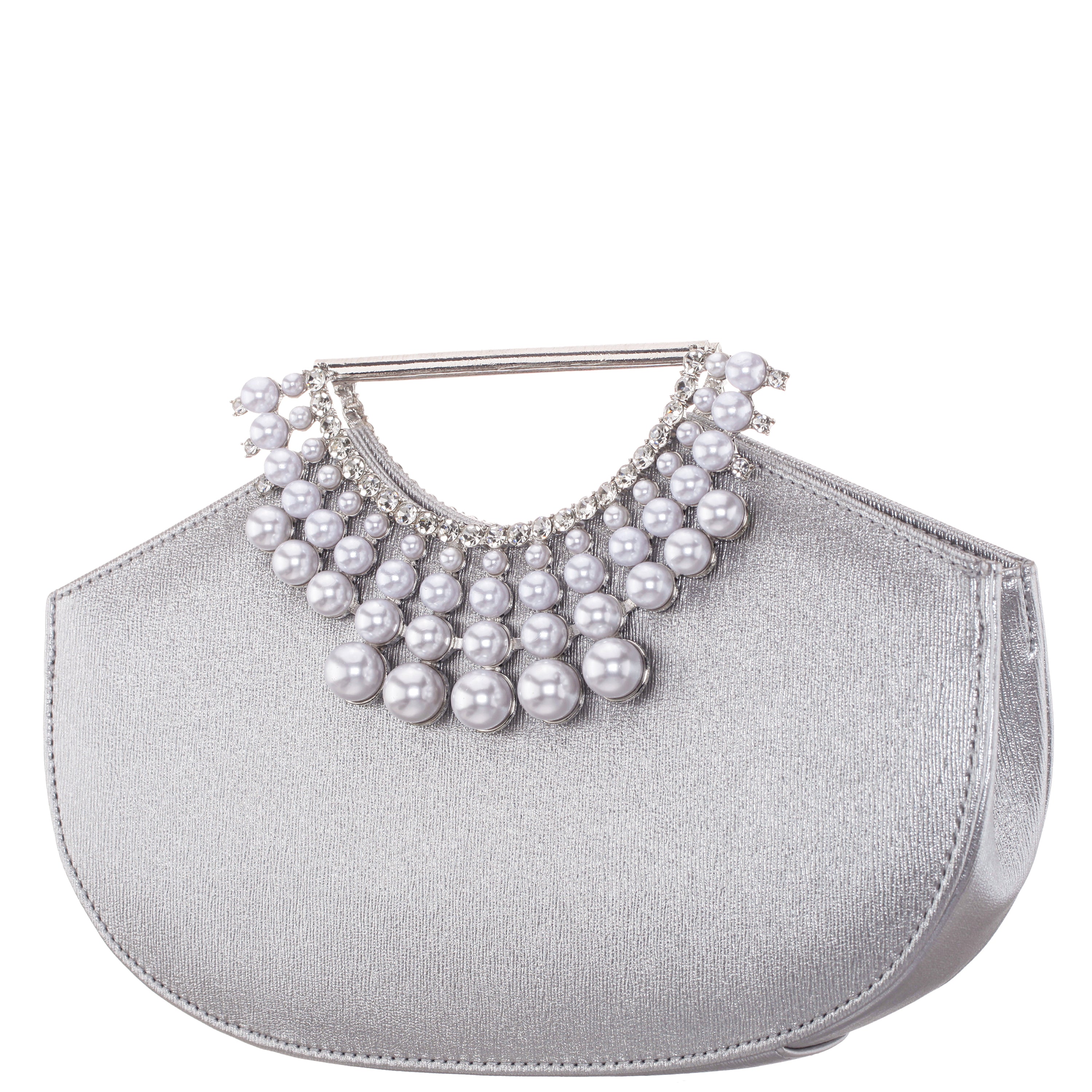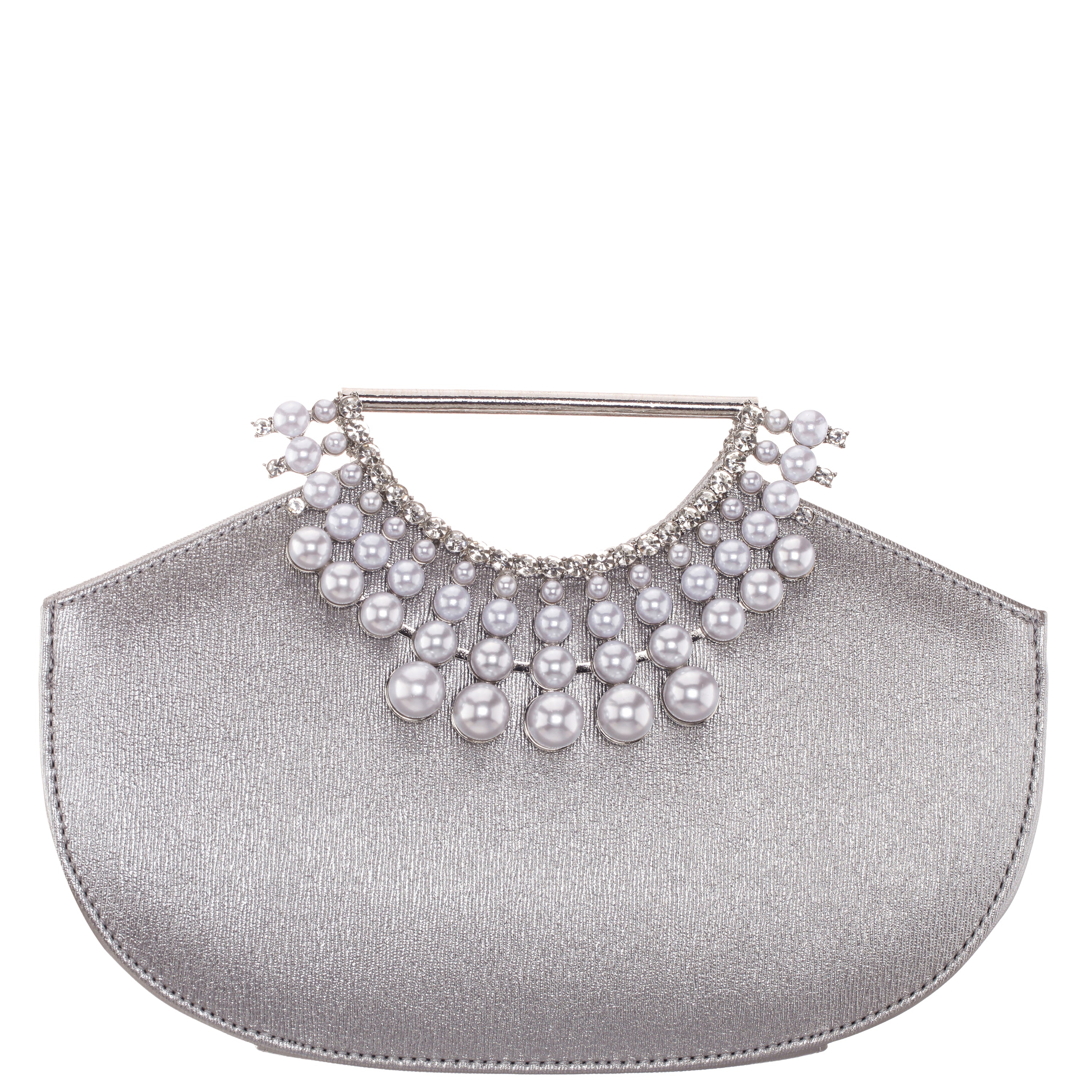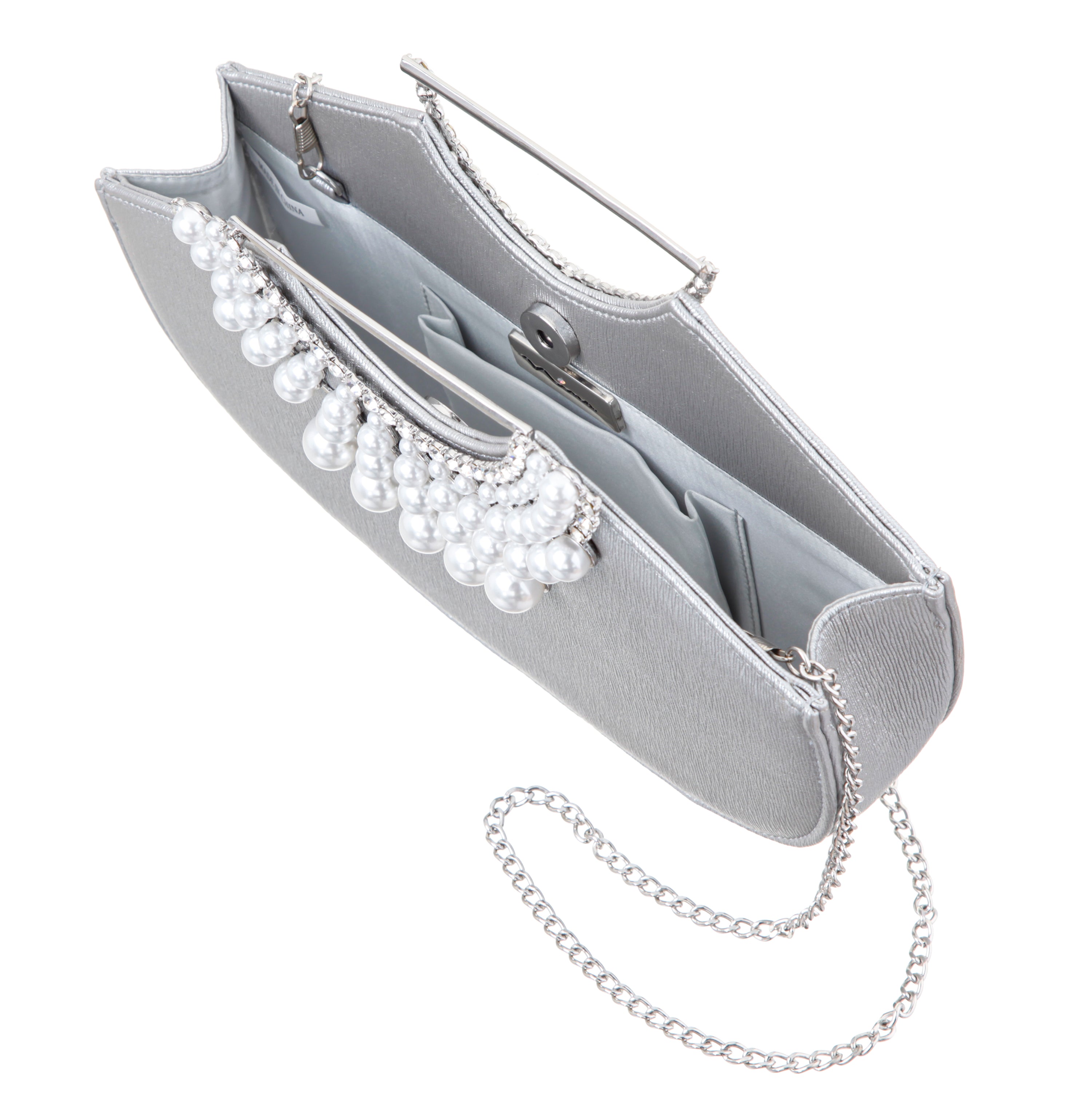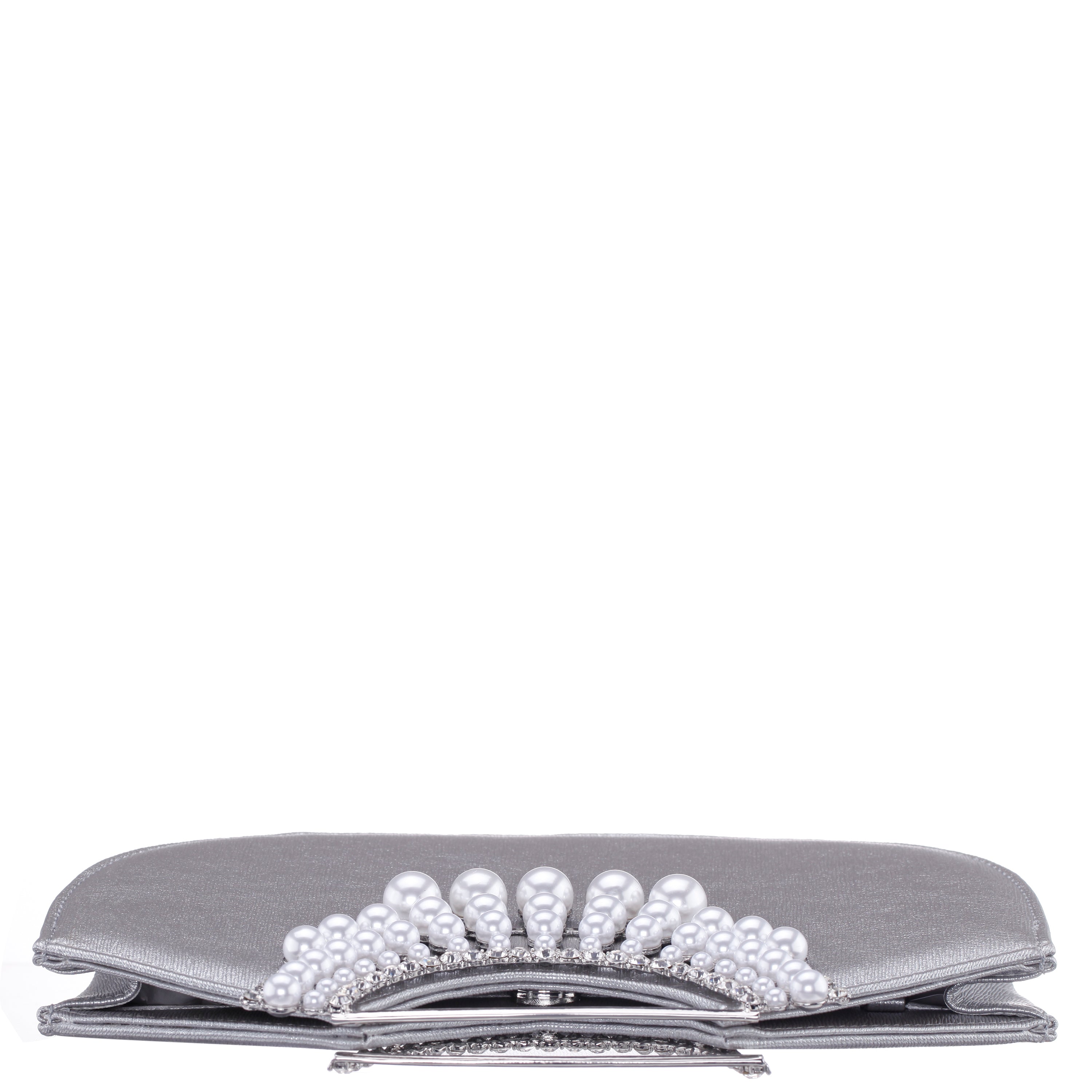 The ALYSSA by Nina is the epitome of sophistication, designed for those who love a touch of glamour. This elegant evening bag is adorned with a pearl and crystal-encrusted handle, adding a dazzling accent to its sleek metallic textured body. Perfectly structured yet slim, it seamlessly complements both modern and classic ensembles, making it an ideal choice for weddings, galas, or a chic night out. The magnetic snap closure ensures easy access while keeping your essentials secure, and the satin-lined interior includes a back wall pocket for effortless organization. Carry it gracefully by the ornate 2" drop handle or drape it over your shoulder with the 18" flat curb chain strap for a versatile, polished look. Elevate your evening ensemble with the timeless luxury of ALYSSA. For complementary styles, explore our satin shop or browse our newest arrivals.