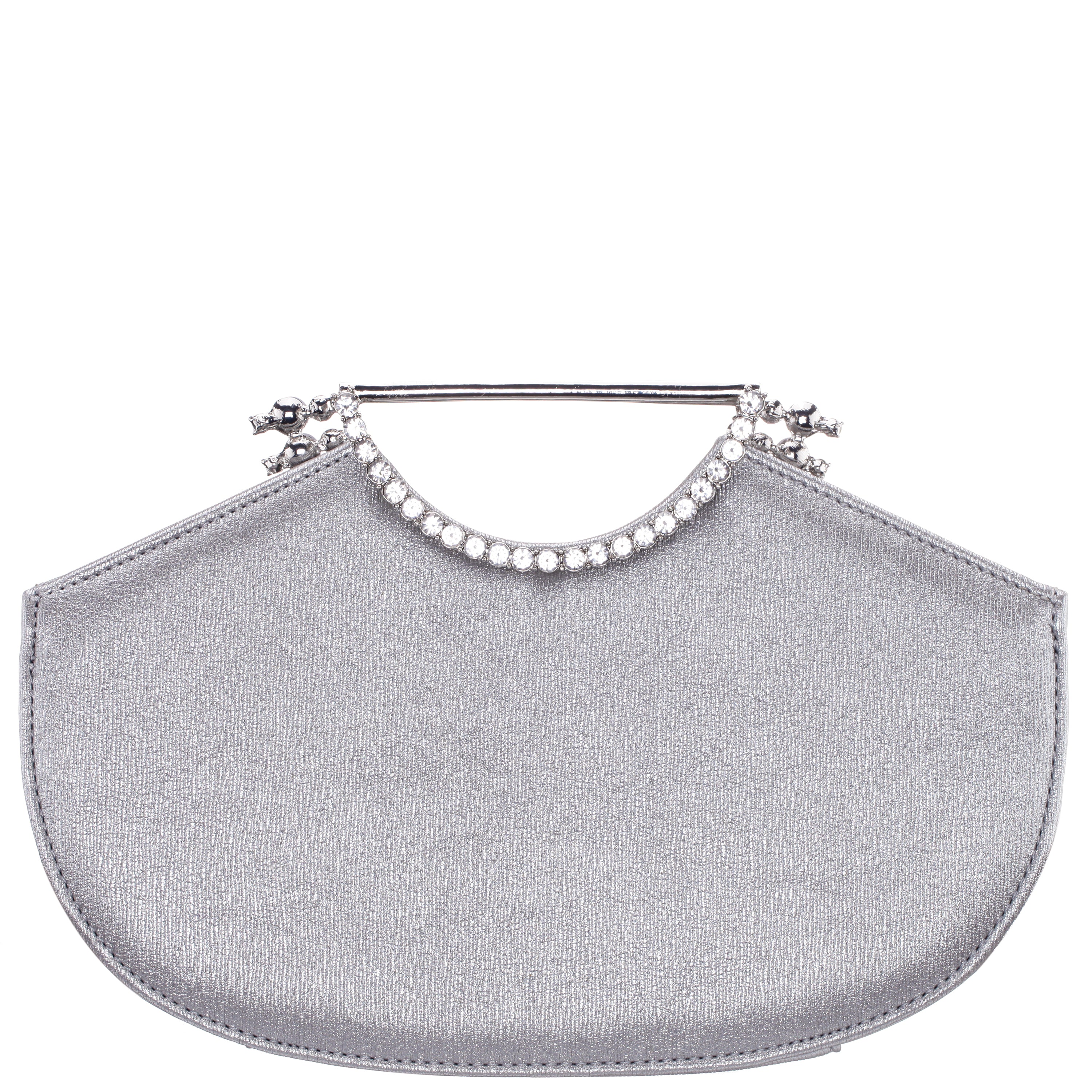 SILVER TEXTURED METALLIC PU HANDLE BAG
