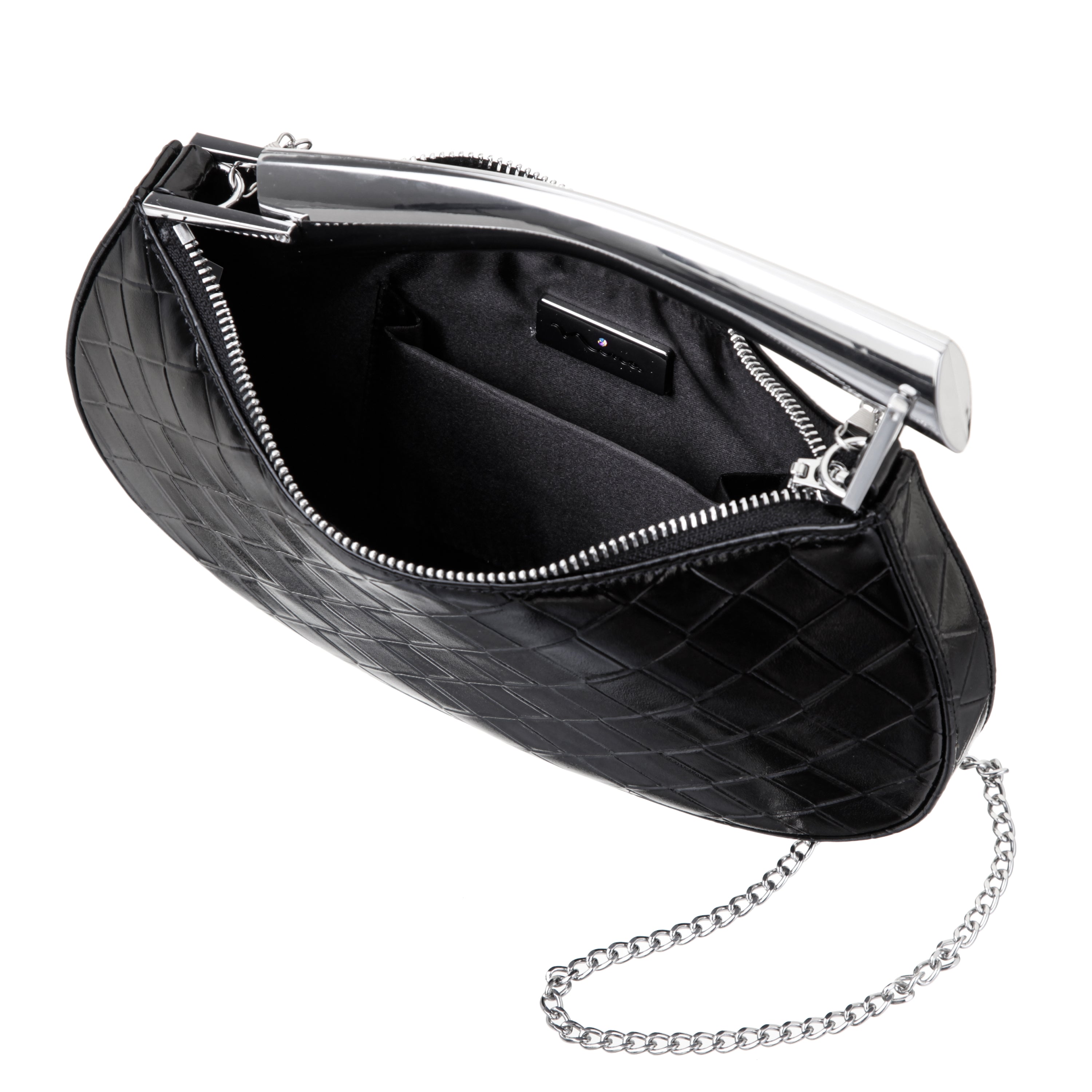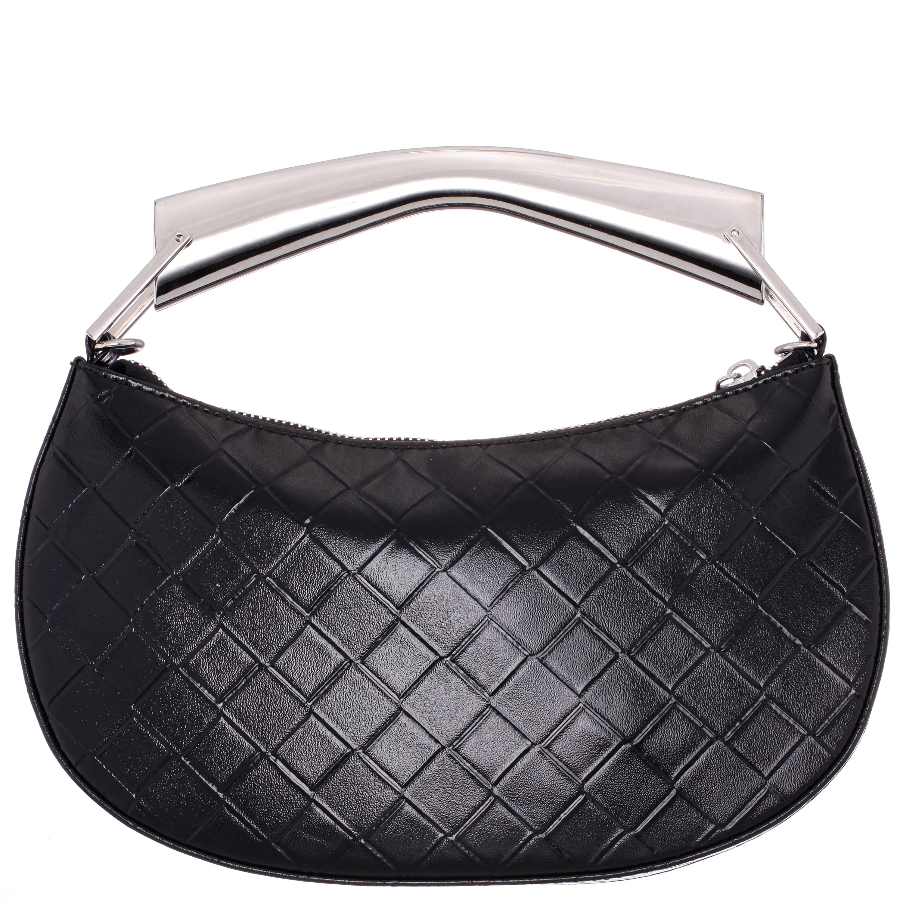 The CORY by Nina is the ultimate blend of modern elegance and artistic craftsmanship. Designed with a sleek half-moon silhouette, this stunning bag features an embossed woven texture that adds depth and dimension to its metallic faux leather body. The sculpted metal handle, with a 3" drop length, enhances its sophisticated appeal, while the 18" flat curb chain strap offers a stylish hands-free carrying option. Secured with a smooth zipper closure, the satin-lined interior includes a back wall pocket for easy organization. Perfect for evening soirées, upscale events, or adding a polished touch to your ensemble, the CORY is a true statement accessory. For complementary styles, explore our satin shop or browse our newest arrivals.