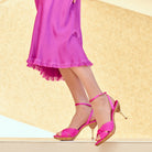 EMPIRE by Nina Shoes – Limited run!Vibrant jewel tones in handwoven satin make this ankle-strap sandal a standout. The unlined vamp and adjustable ankle strap provide a flattering and comfortable fit, while the full memory foam insole ensures all-day ease. Designed with a faux cork rocker bottom and a vintage-inspired metal heel, the EMPIRE channels retro charm with a modern twist. Just the right balance of sweet and spice, this sandal is made to shine.