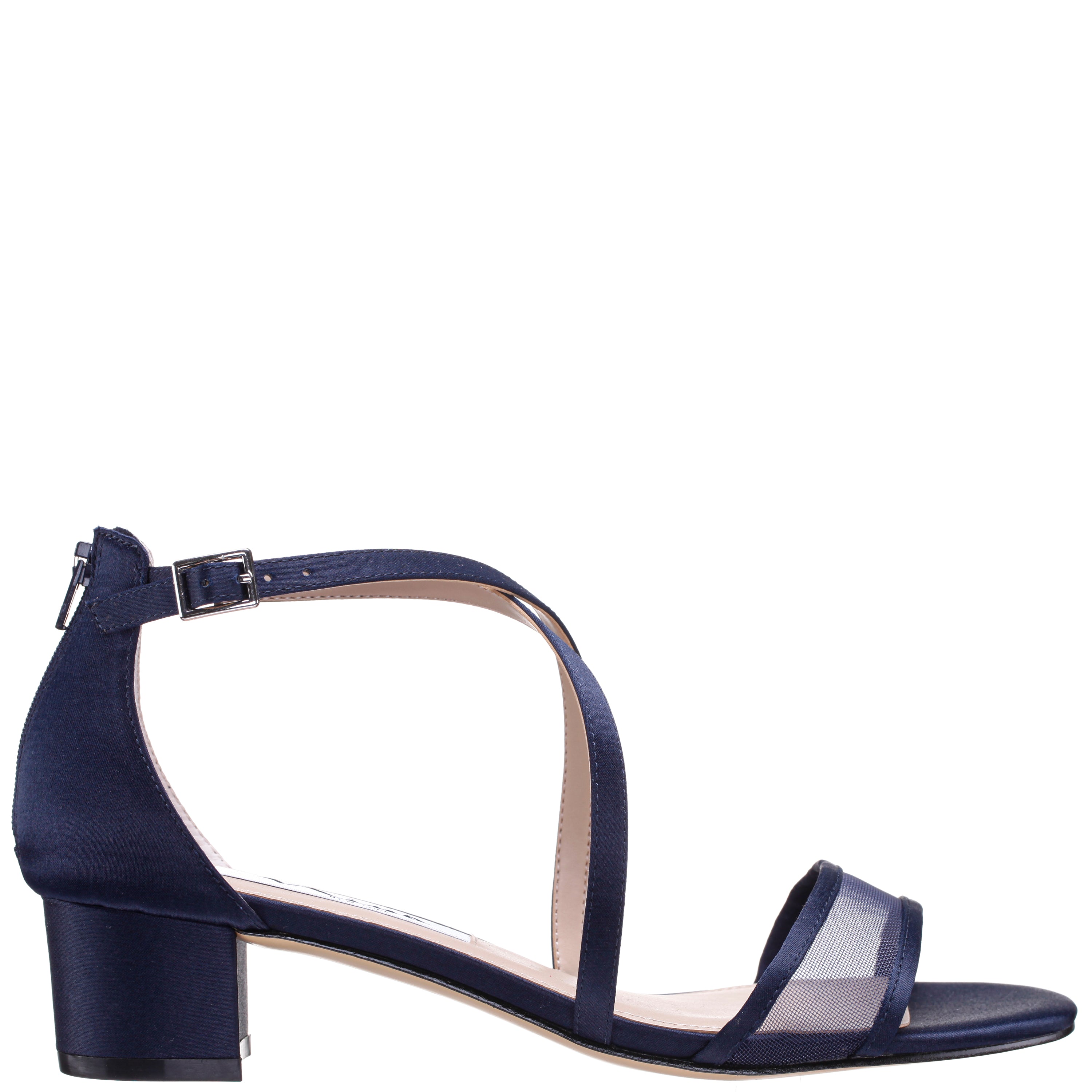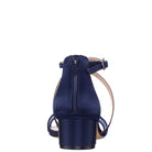 NEW NAVY SATIN WITH MESH BLOCK-HEEL SANDALS WITH ANKLE-STRAP