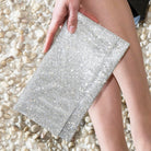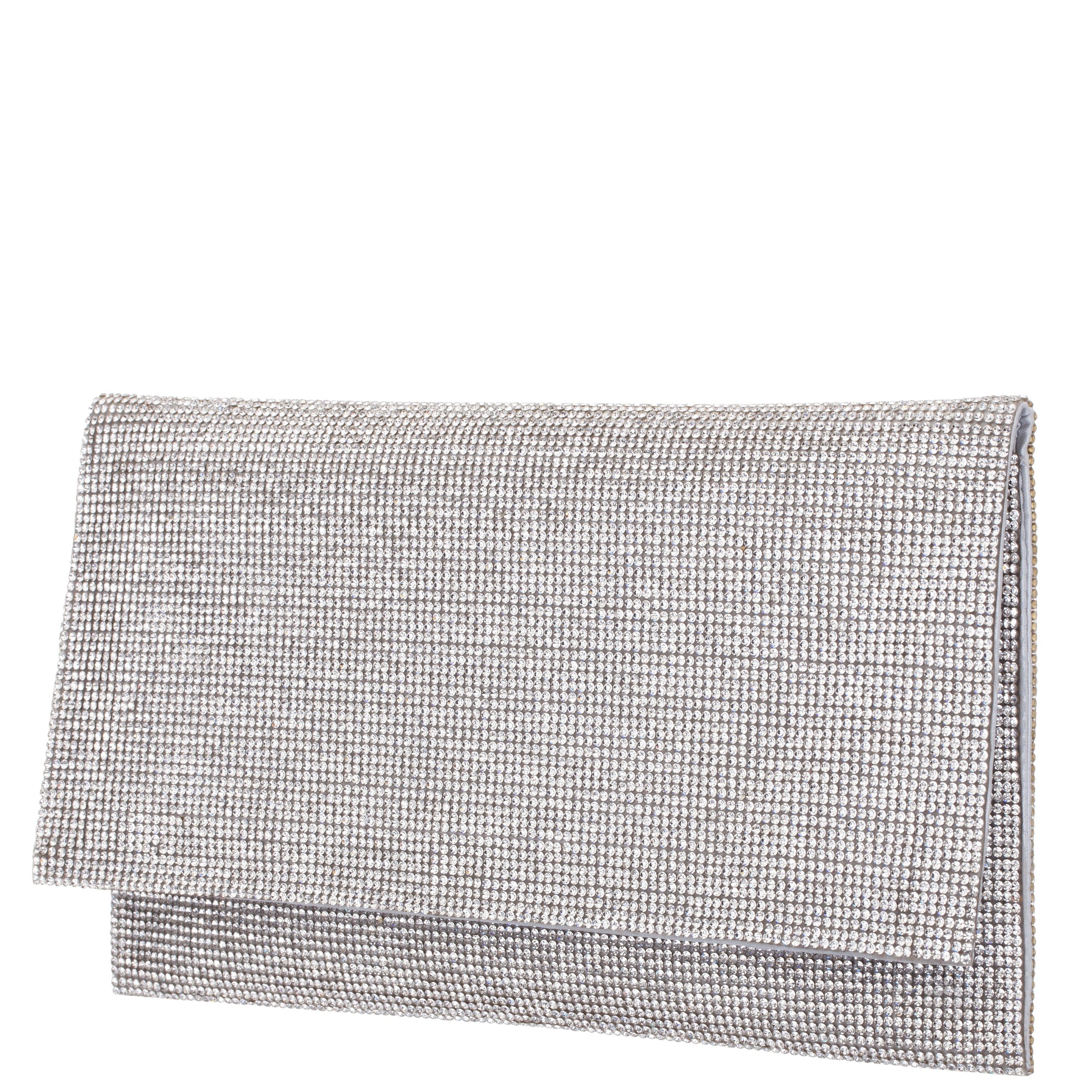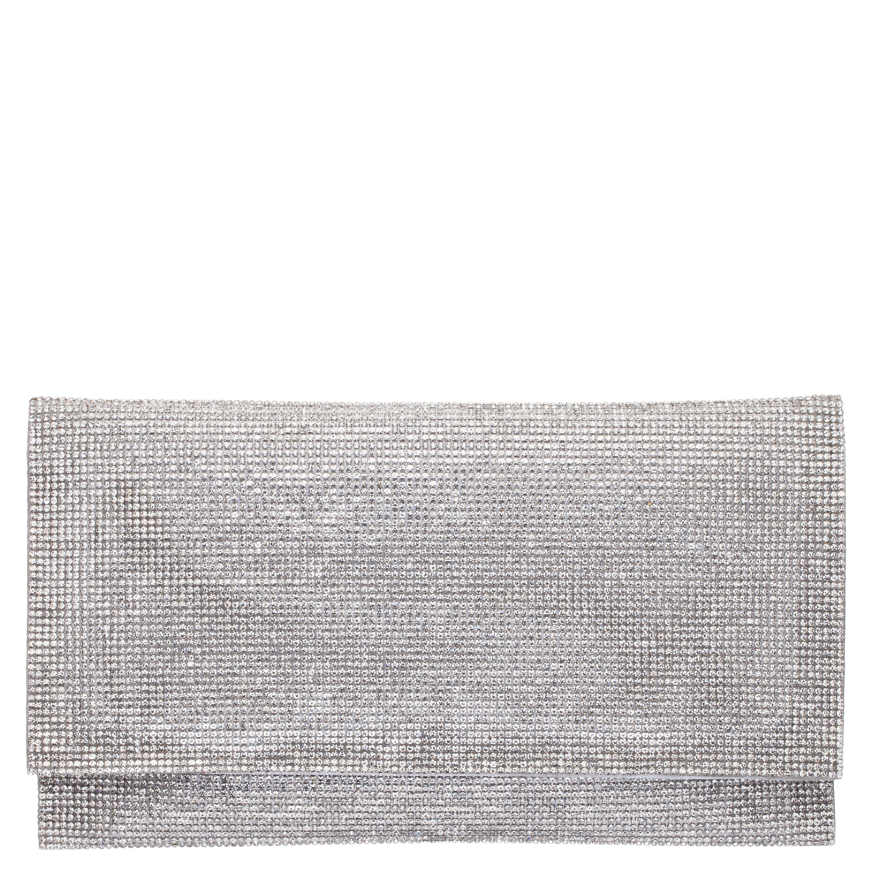 The KIMORA by Nina is the epitome of glamour, designed to make every occasion sparkle. This allover crystal-encrusted envelope clutch delivers a dazzling statement with its brilliant glass crystal embellishments, catching the light from every angle. Its sleek, structured silhouette offers a contemporary edge, while the magnetic snap closure ensures both style and security. The satin-lined interior includes a back wall pocket for effortless organization of your essentials. Carry it as a clutch for an elegant touch, or drape it over your shoulder with the 22" flat curb chain strap for a hands-free look. Whether you're attending a wedding, gala, or night out, the KIMORA ensures you shine with every step. For complementary styles, explore our satin shop or browse our newest arrivals.
