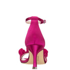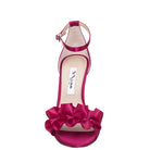 PARFAIT PINK SATIN WITH RUFFLE MID HEEL SANDALS WITH ANKLE-STRAP