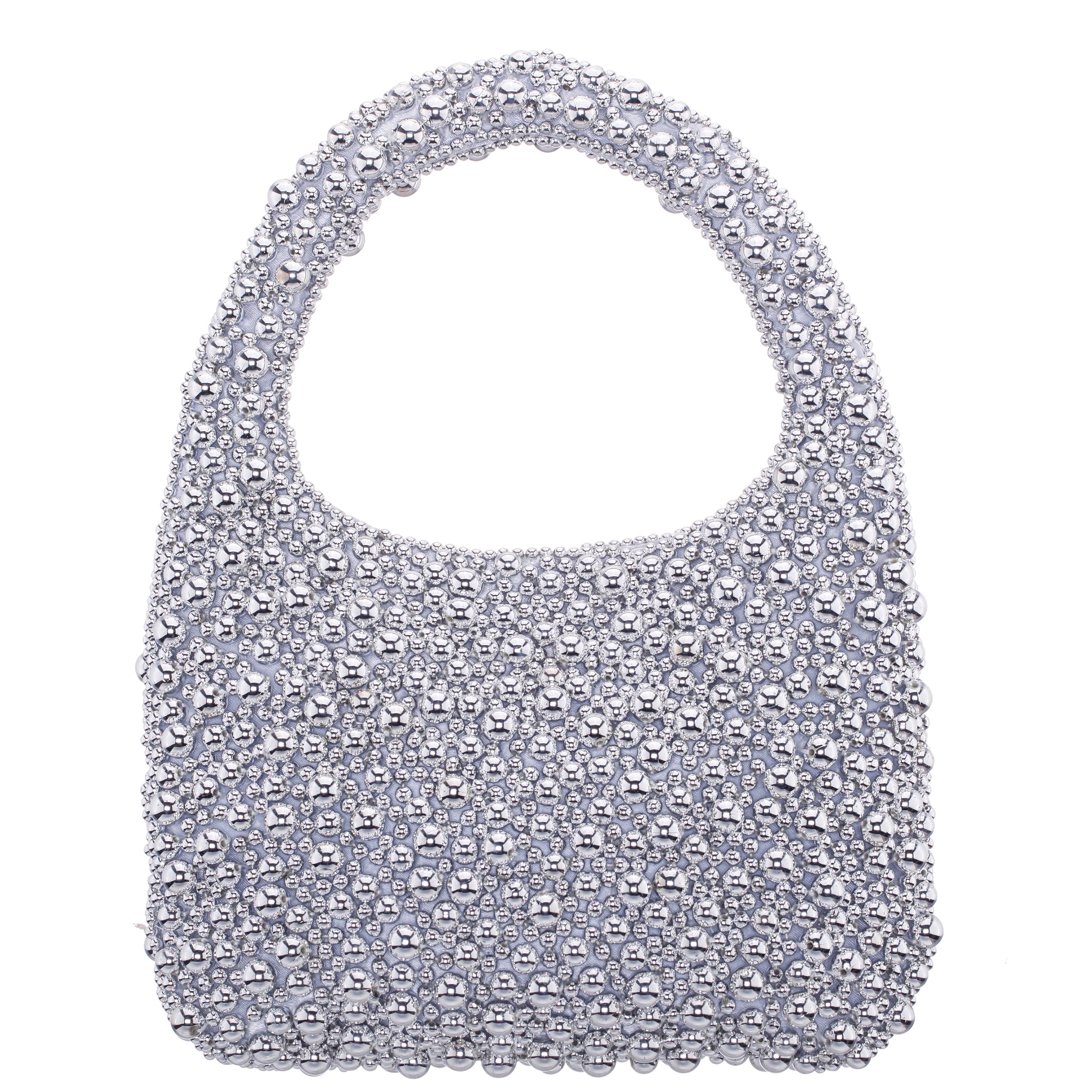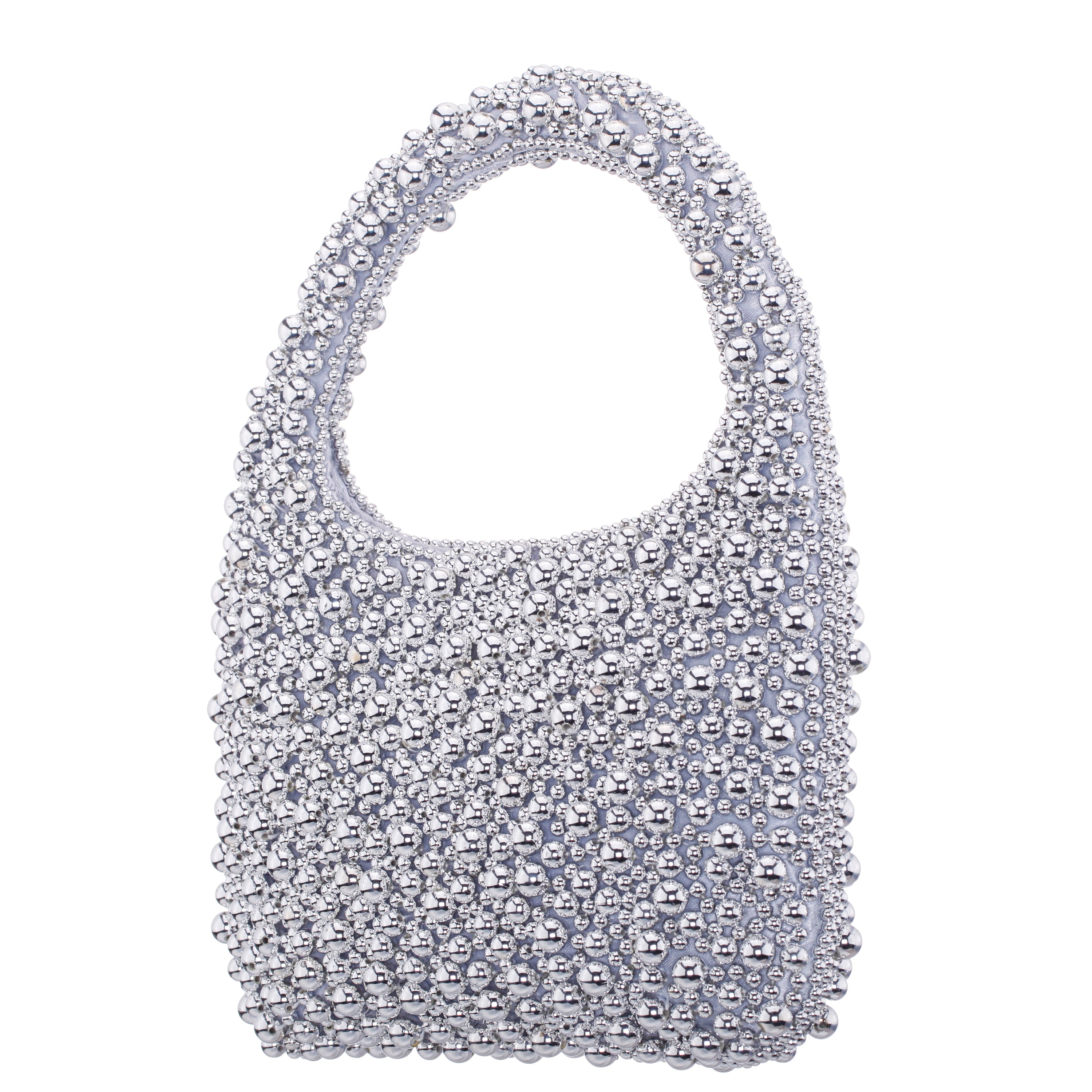 ZARIAH is a luxurious beaded hobo bag, designed to bring elegance and texture to any evening ensemble. Featuring an all-over beaded design with plastic pearls and intricate beadwork, this bag offers a sophisticated yet modern take on a timeless silhouette. The structured yet soft shape adds effortless charm, making it the perfect accessory for weddings, formal events, or special occasions. With versatile carrying options, ZARIAH by Nina can be held by its 4.5" drop-length top handle for a polished look or worn as a shoulder bag with the 18" drop-length flat curb chain strap. The satin synthetic fabric lining adds a luxurious touch, while the back interior wall pocket provides convenient storage for your small essentials. Secured with a magnetic snap closure, this bag keeps your belongings stylishly safe. Whether you’re dressing up a chic cocktail dress or adding a touch of sparkle to a sleek gown, ZARIAH is the ultimate statement piece. For complementary styles, explore our satin shop or browse our newest arrivals.