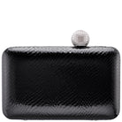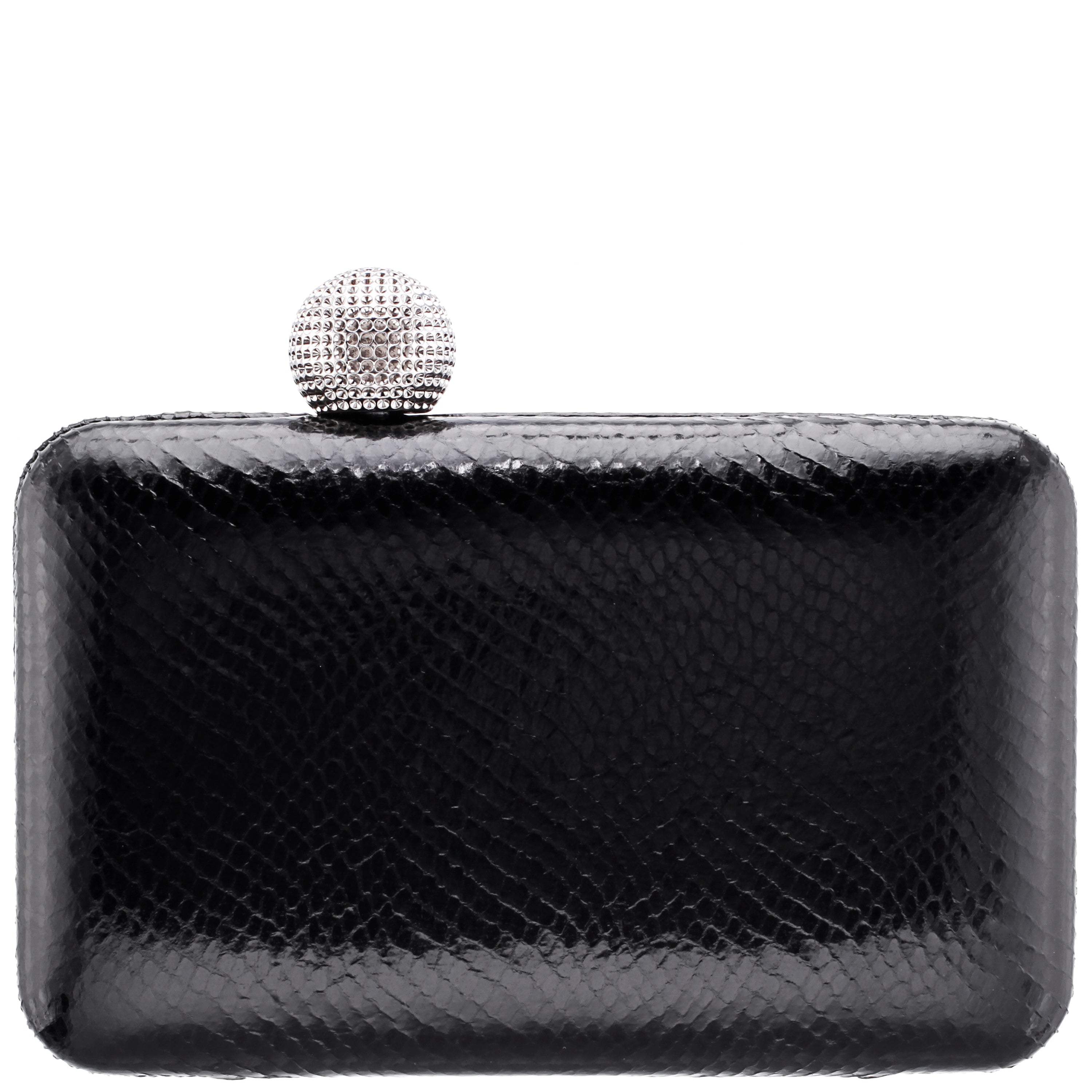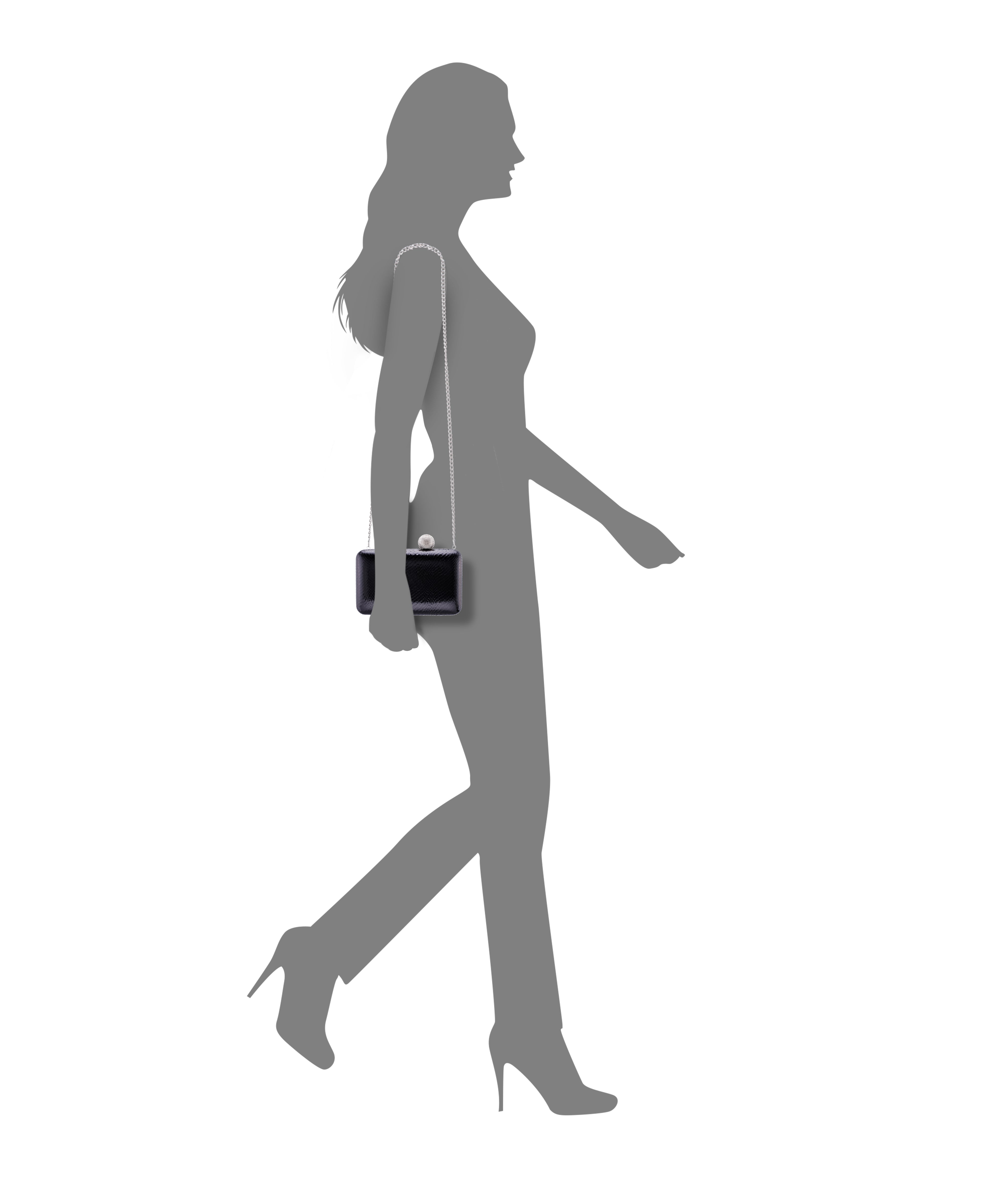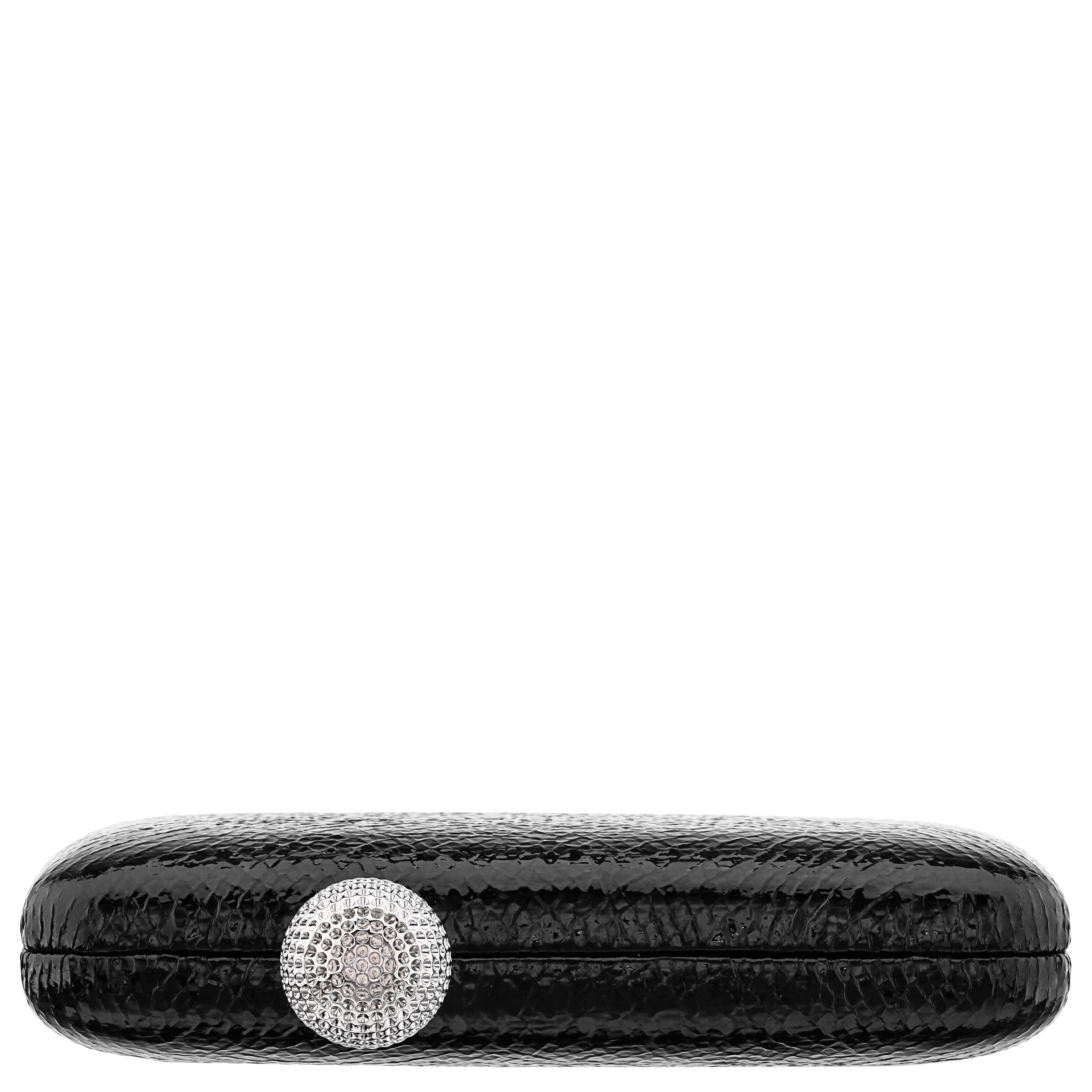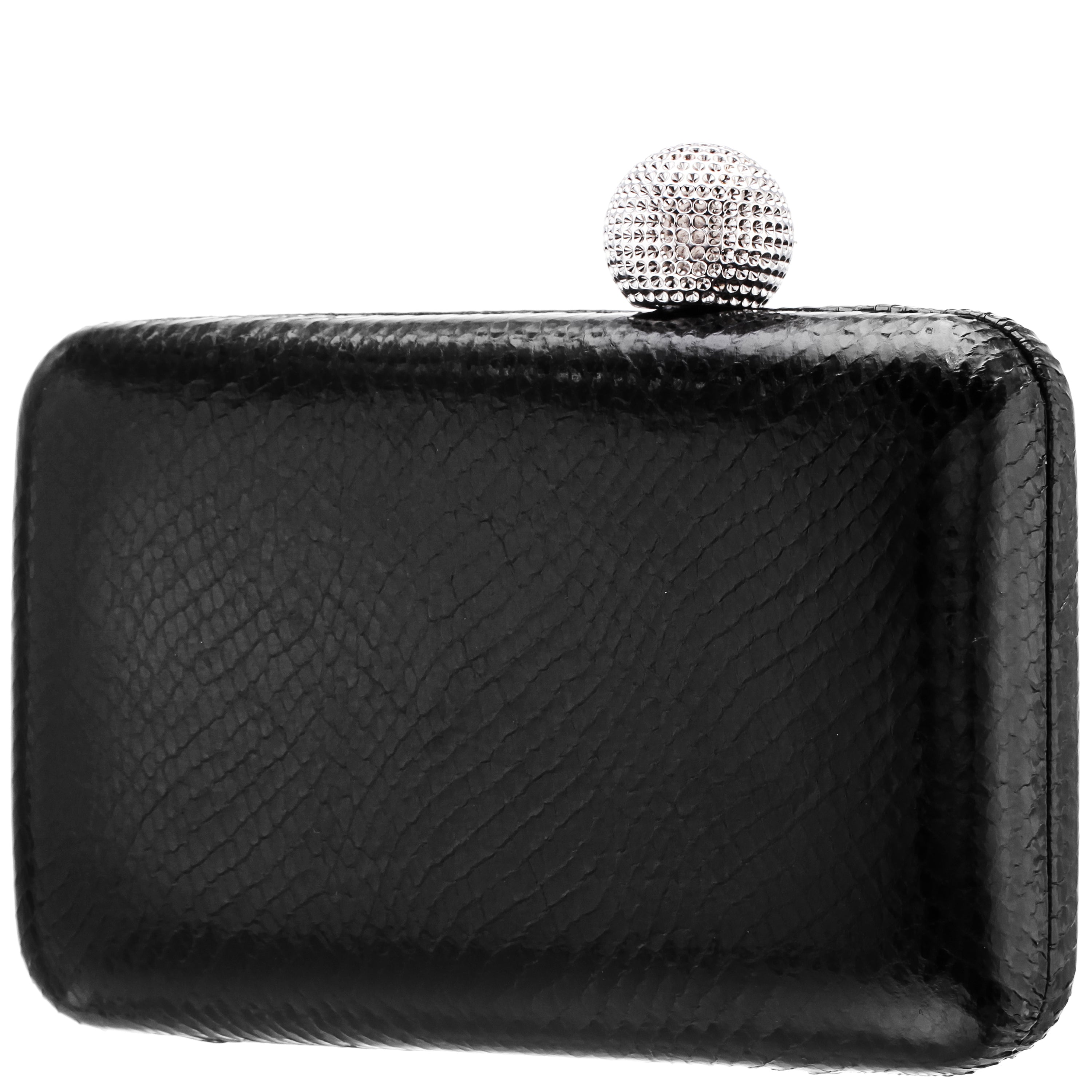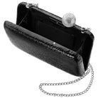 A signature crystal-clasp sits atop an elegant frame clutch fashioned with a drop-in chain strap for versatile styling.