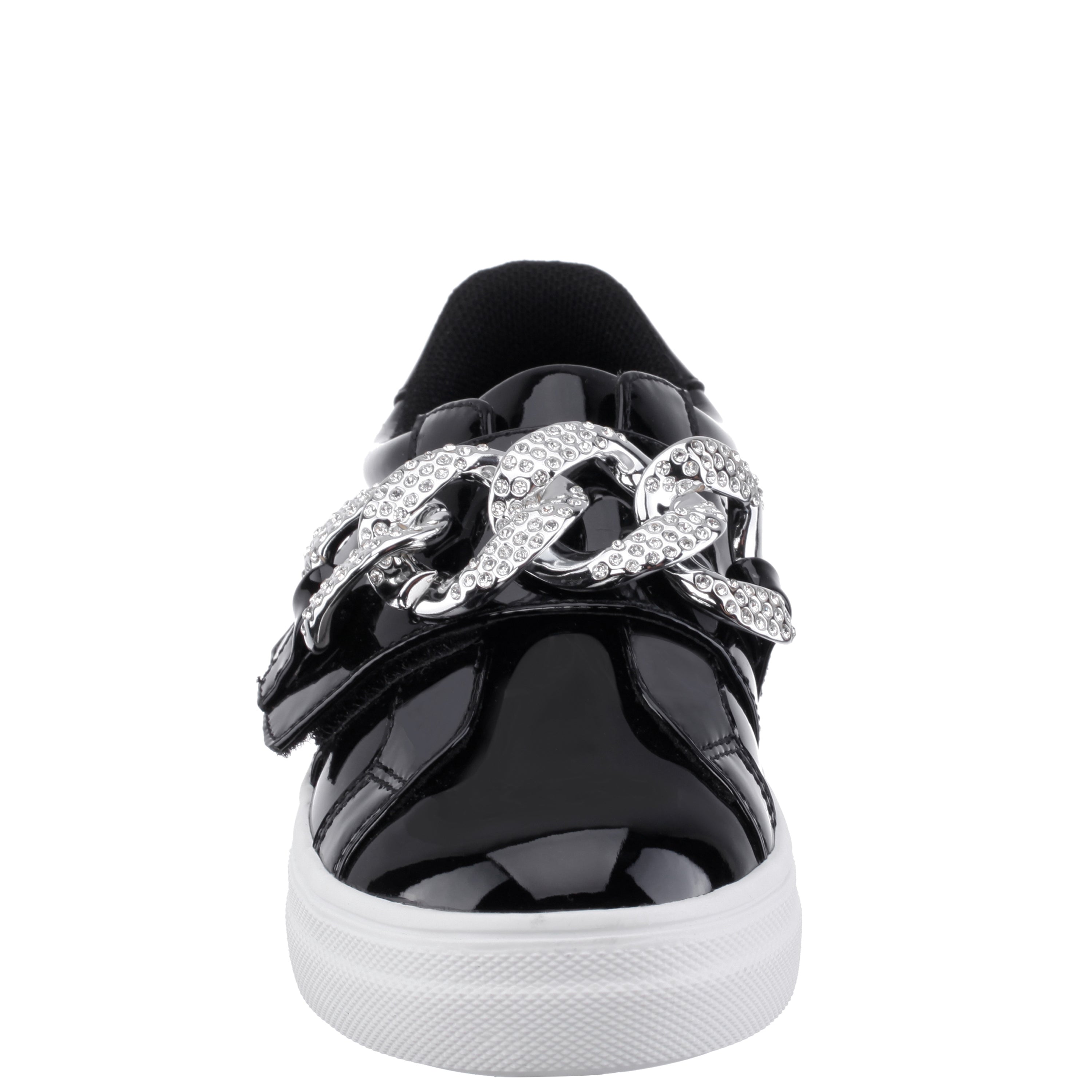 BLACK PATENT LOW TOP SLIP-ON SNEAKERS