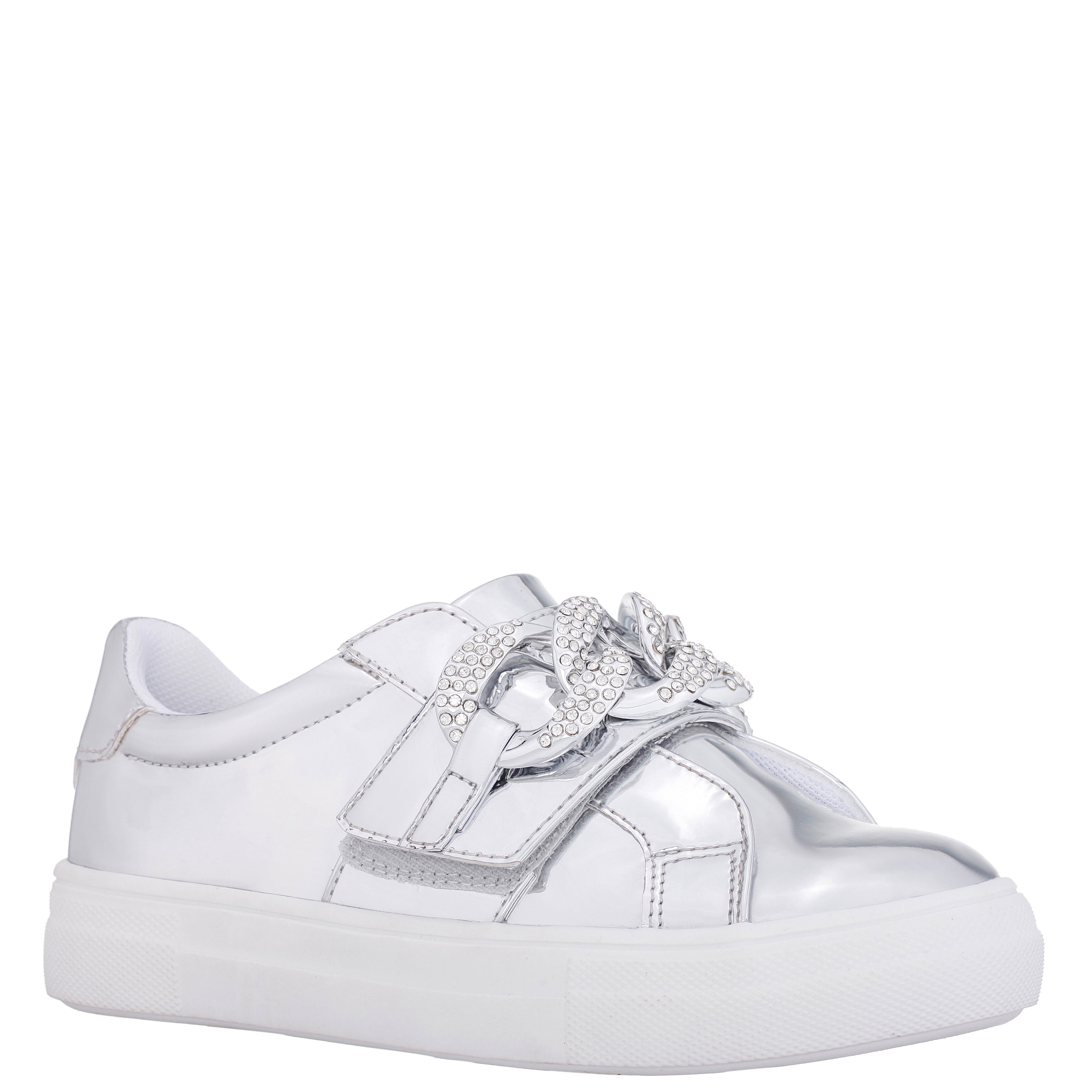 SILVER METALLIC LOW TOP SLIP-ON SNEAKERS
