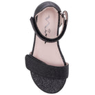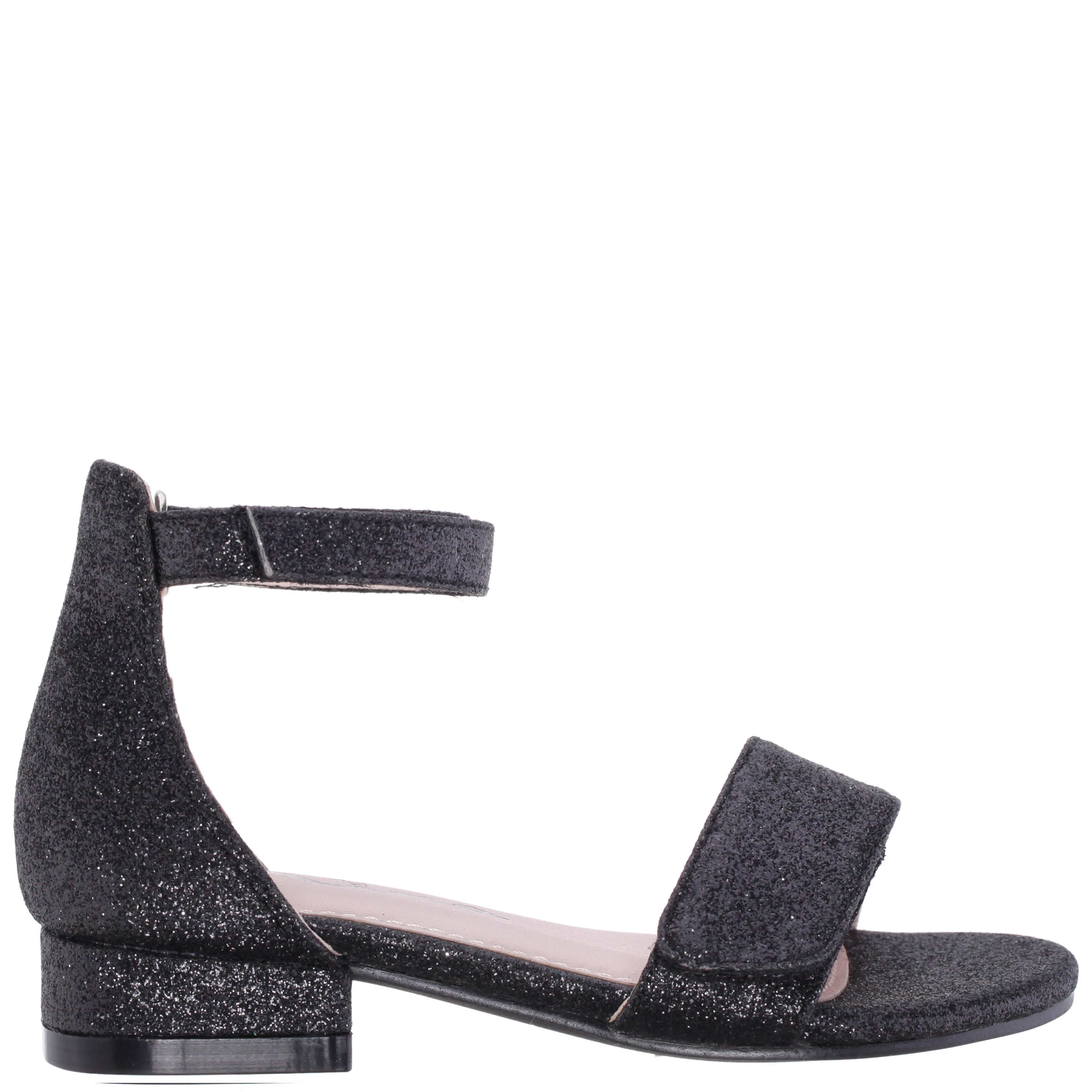 Shine with every step in REJINA by Nina Shoes, a sparkling girls dress sandal designed to dazzle. Covered in twinkling glitter and set on a stylish block heel, this standout sandal features dual adjustable hook and loop straps for a secure, custom fit. Perfect for pairing with skirts and dresses, REJINA combines glamour with all-day comfort thanks to a cushioned memory foam insole and flexible non-slip sole—a must-have for every special occasion.