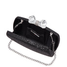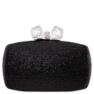 BLACK GLITTER MINAUDIERE WITH CRYSTAL BOW CLASP