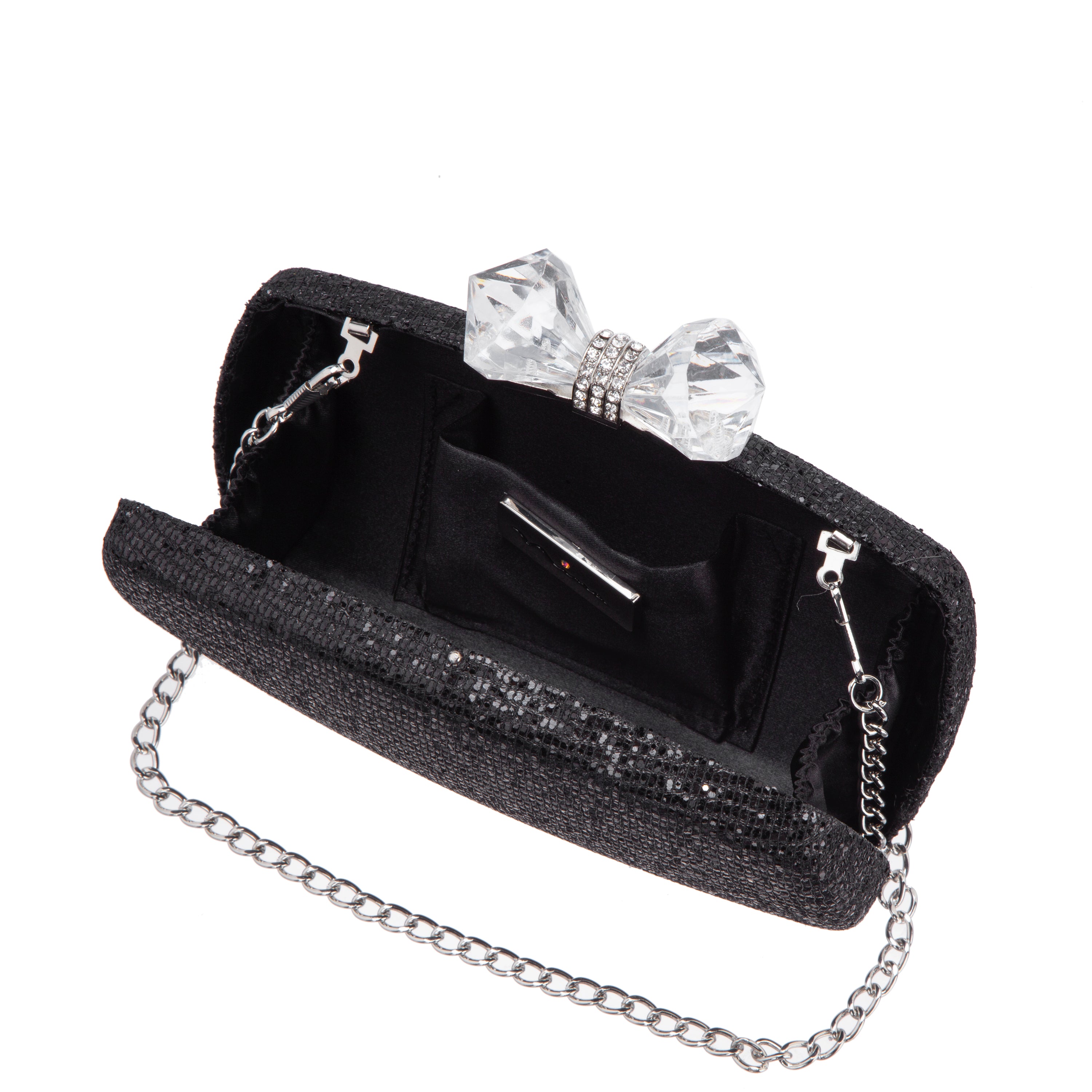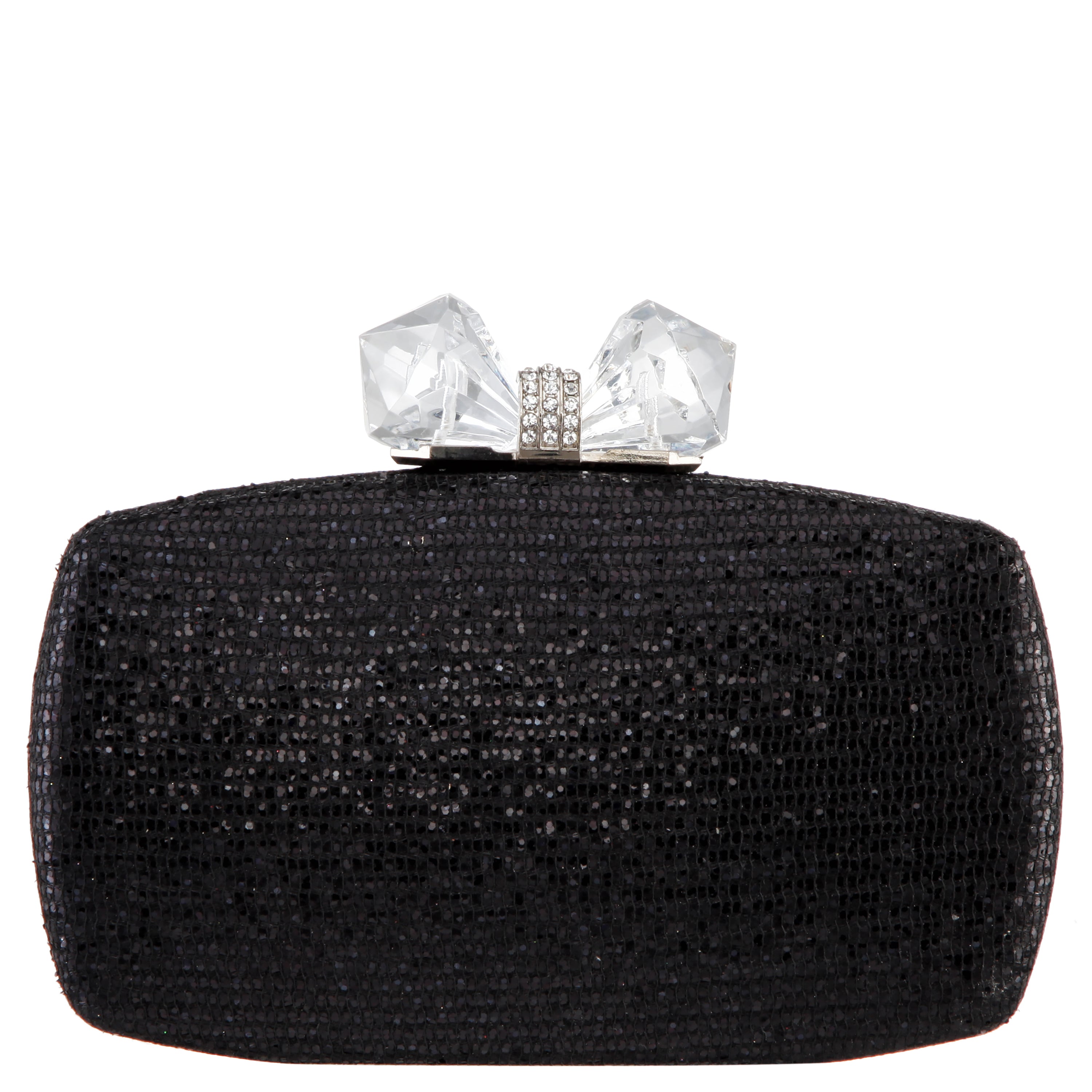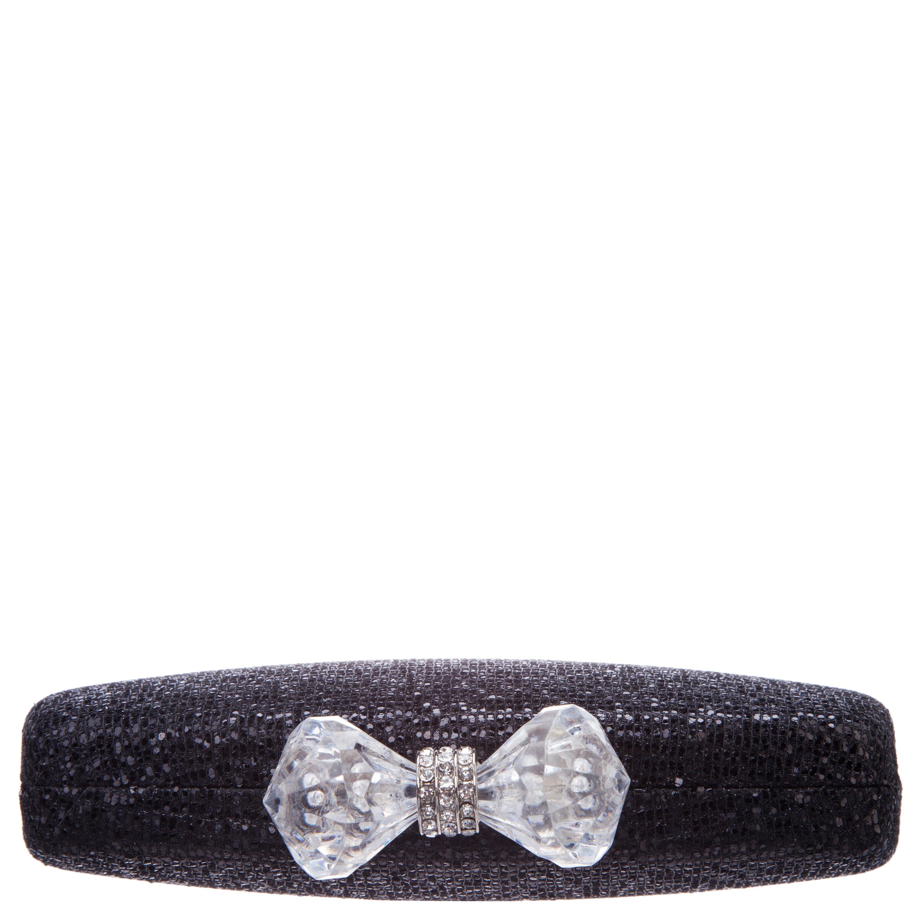 • Glitter minaudiere with crystal bow clasp