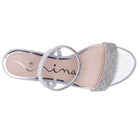 Bring a touch of glamour to any occasion with the GWENDA by Nina Shoes, a stunning sandal that seamlessly blends elegance and versatility. Designed with a gold-plated mid-block heel and shimmering fabric, this sandal offers stepped-up styling that transitions effortlessly from a daytime lunch to an evening event. The sparkling crystal-covered vamp and ankle band add a dazzling effect, while the elastic slingback styling provides a secure and flexible fit. Comfortable enough for all-day wear, the GWENDA is the perfect finishing touch to any ensemble, offering stunning yet contemporary styling.