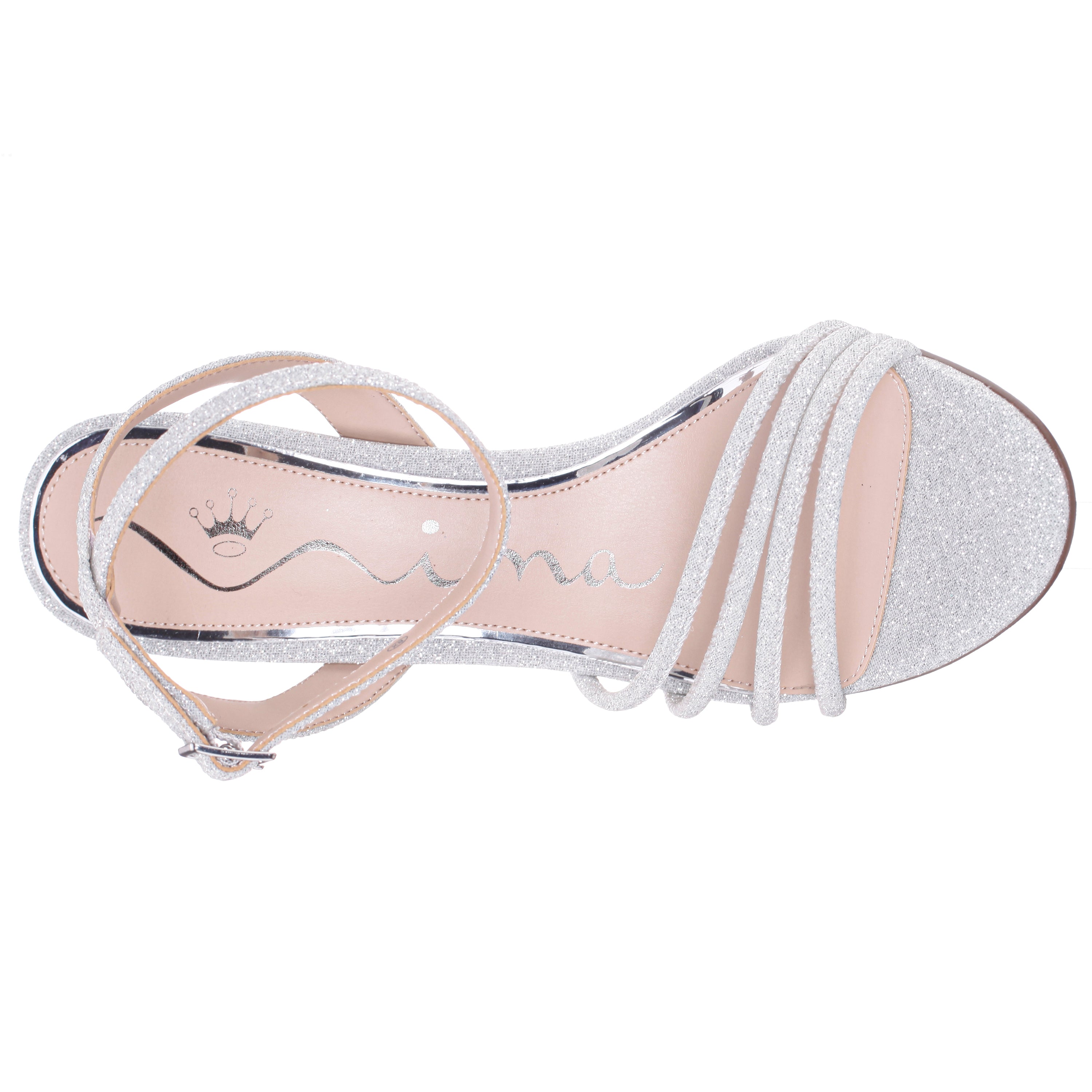 Crafted with slender straps across the vamp and softly glittered material, the VERUCA by Nina Shoes is a sculpted mid-heel sandal that is feminine and chic with a flirty touch. Designed for all-day comfort, this sandal transitions effortlessly from day to night. The adjustable ankle strap ensures a secure and customizable fit, while its elegant silhouette makes it the perfect choice for a modern trendsetter. Whether paired with a flowing evening dress or tailored pants, the VERUCA adds a polished finish to any ensemble.