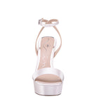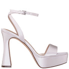 IVORY SATIN ULTRA HIGH PLATFORM SANDALS WITH ANKLE-STRAP AND SCULPTED HEEL