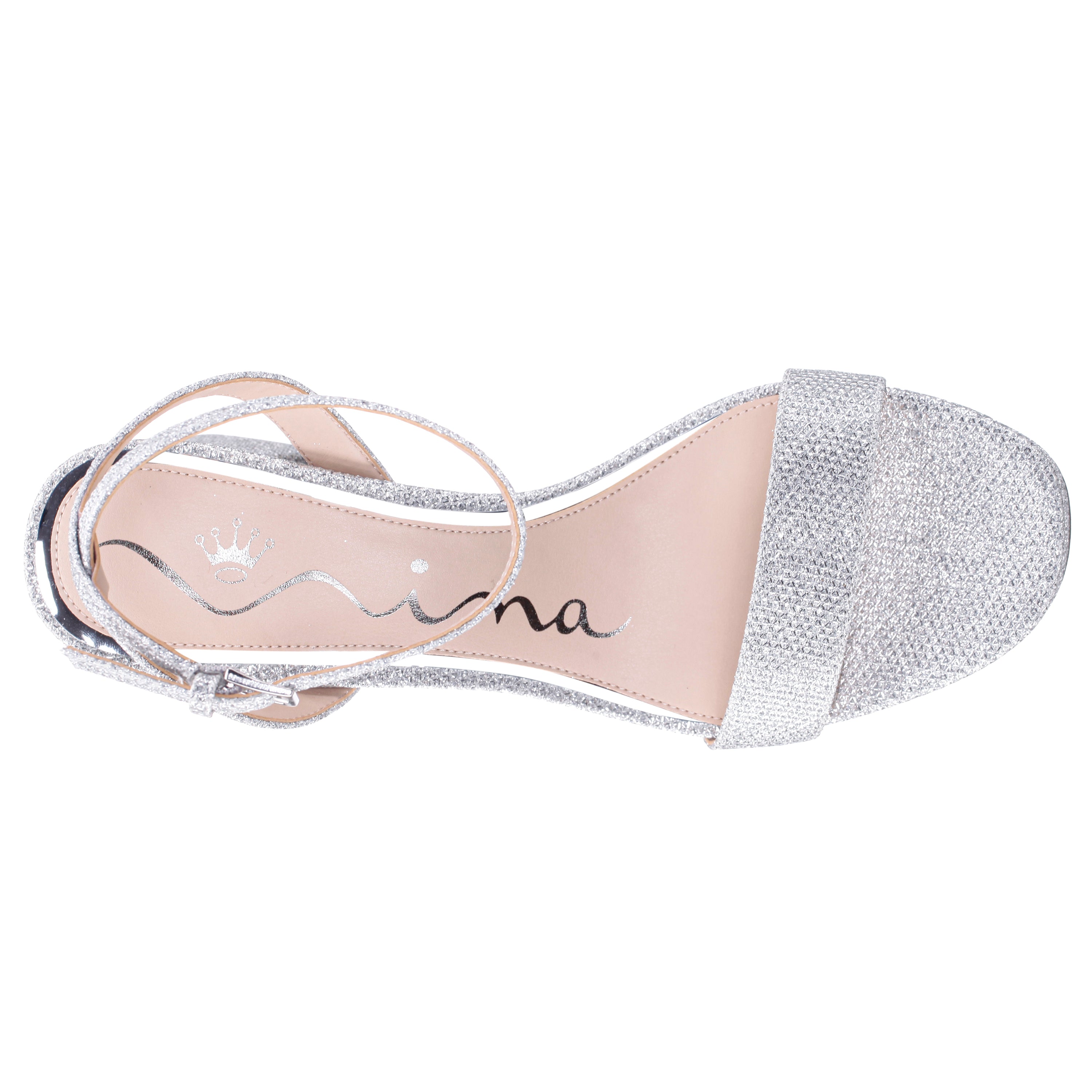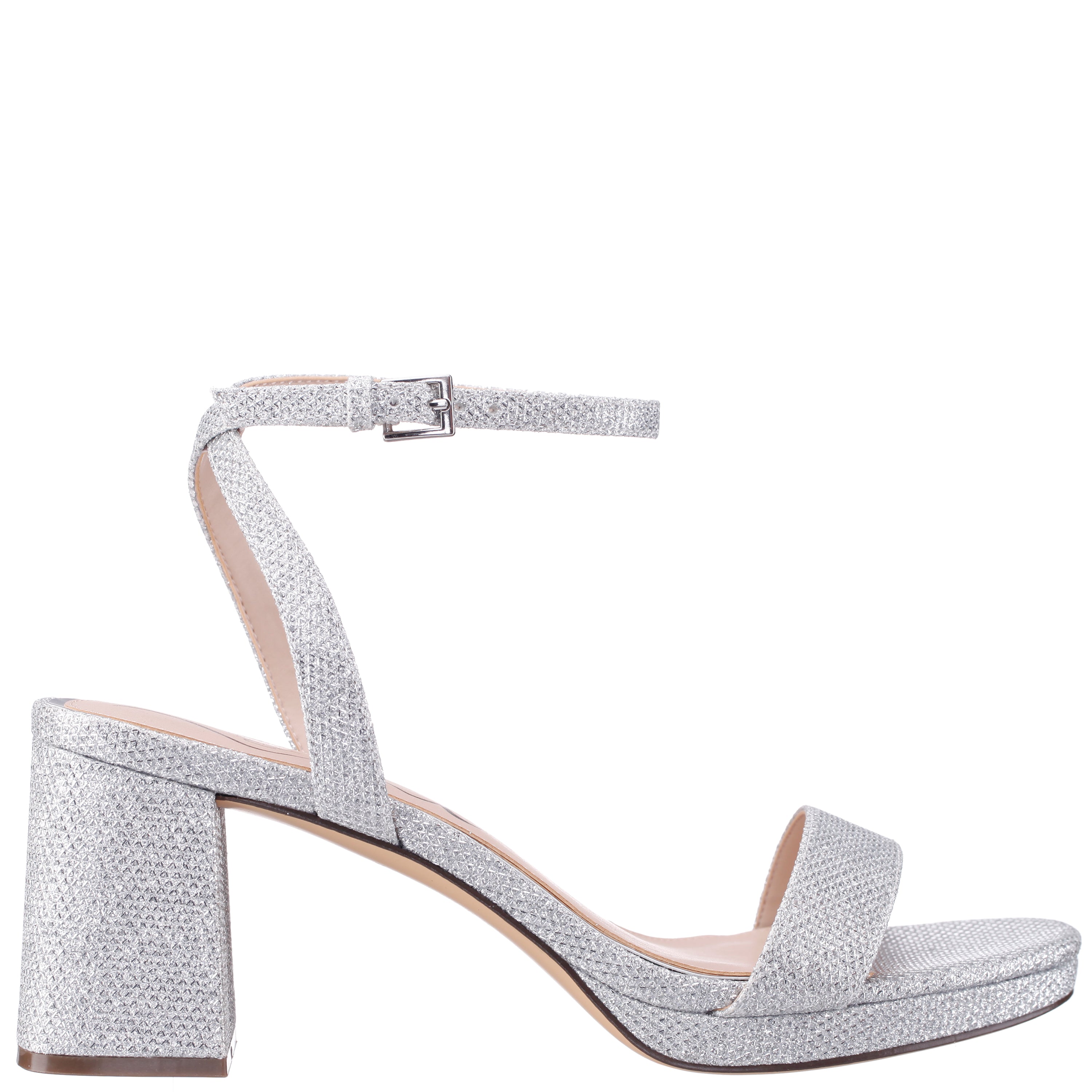 BERGEN - Iconic Block Heel Sandal for Effortless Day-to-Night Style Achieve icon status with the BERGEN by Nina Shoes, a minimalist ankle-strap sandal designed for versatility and style from day to night. With its chunky 2-3/4 inch block heel and subtle 3/8 inch platform, this sandal provides a stable lift that combines comfort and fashion effortlessly. The secure, adjustable ankle strap and lightly cushioned insole make it a go-to choice for extended wear. Crafted from materials with a hint of sparkle, the BERGEN adds just the right amount of shine to any outfit, whether you're attending a casual brunch or a sophisticated evening event.