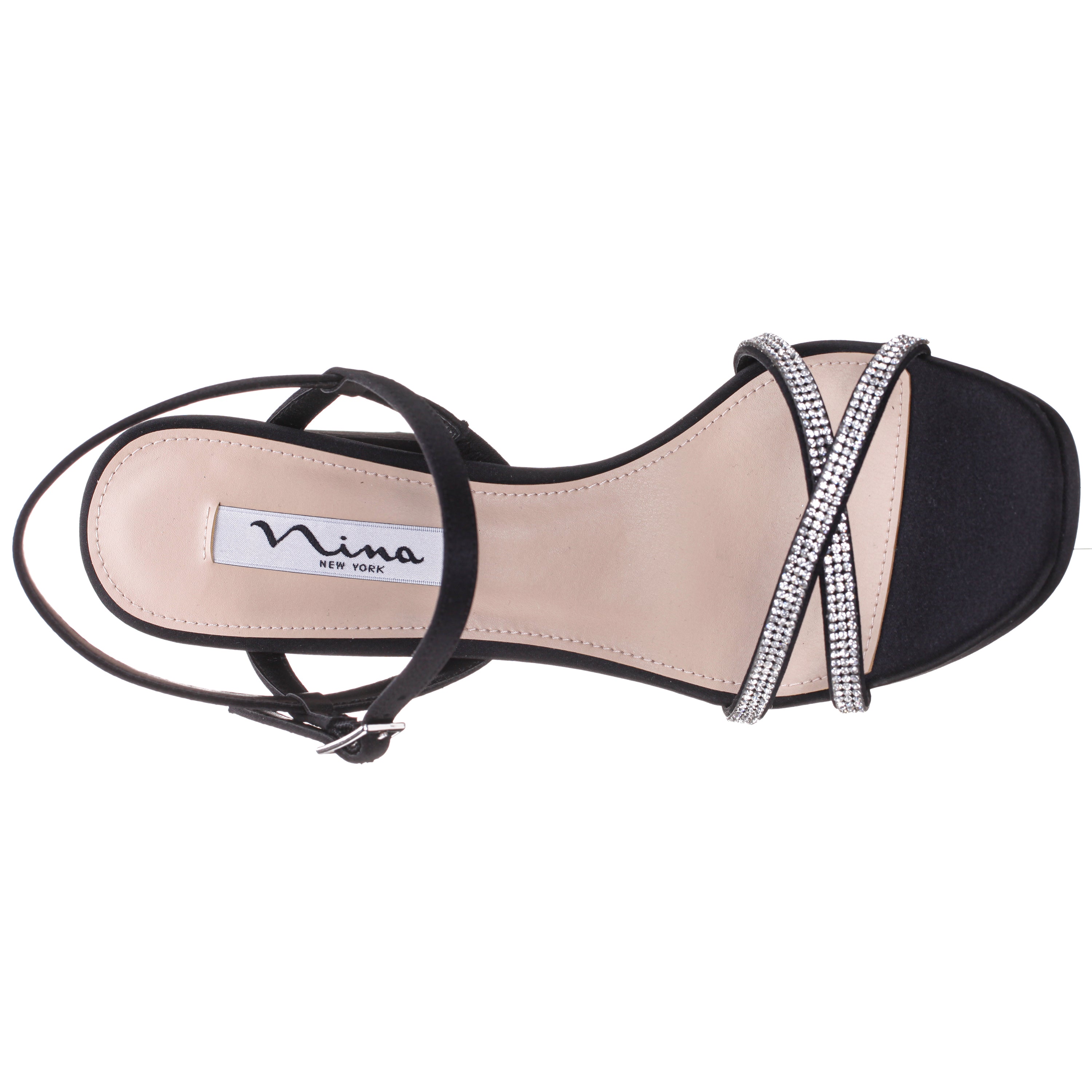 Make your fashion statement in Steven by Nina, a bold platform sandal with special occasion style. Sitting on a high, block heel, this contemporary style is accented with just enough bling on its criss-crossed toe straps for a feminine touch. You can pair them with whatever you are wearing from date-night to black-tie, to elevate whatever you are wearing.