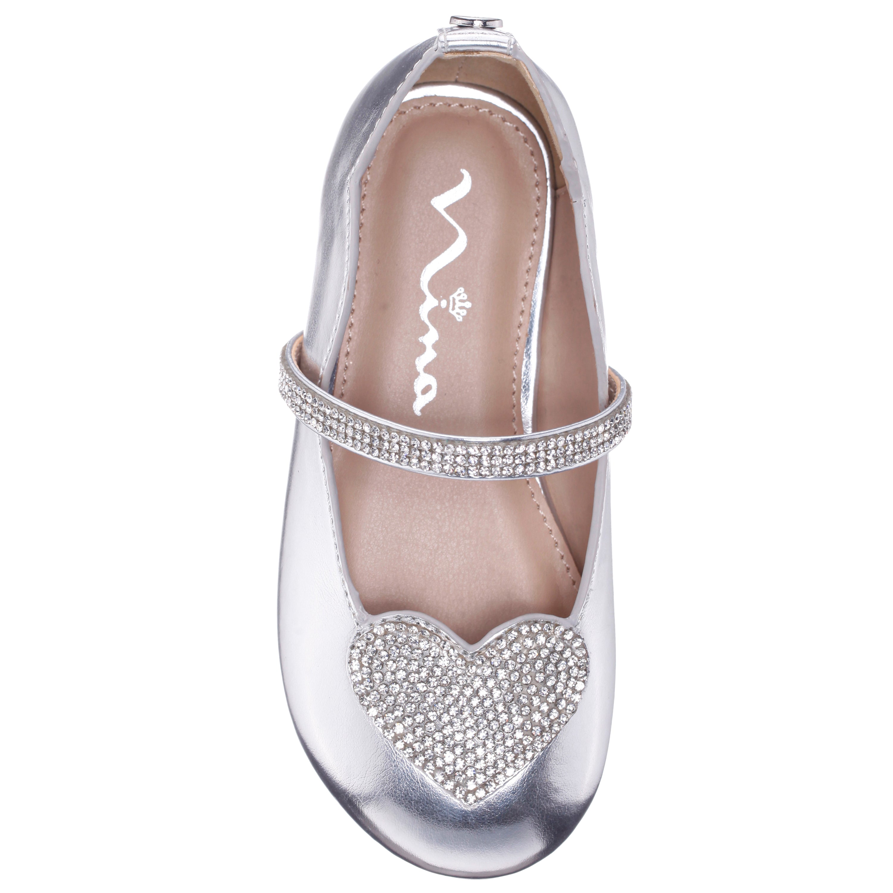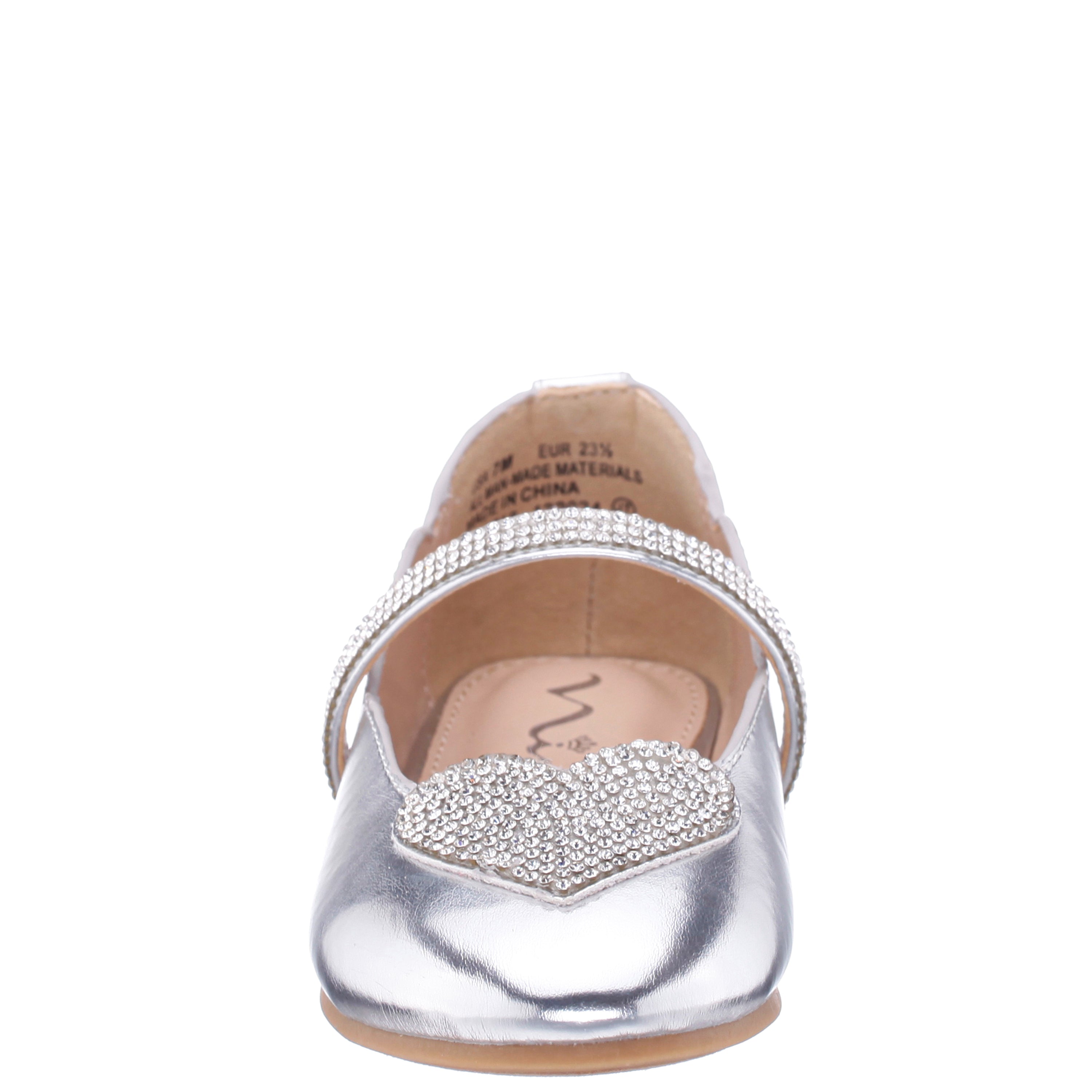 Shine with every step in the dazzling DIAZ by Nina Shoes, a ballet-inspired girls flat that’s as graceful as it is glamorous. Designed with a classic round toe and a sparkling crystal strap topped with a charming rhinestone heart, DIAZ adds just the right amount of sparkle to any outfit. An easy elastic strap offers a secure, comfy fit, while the plush memory foam insole keeps her feet happy all day. Finished with a flexible non-slip sole, this sweet style is perfect for dress-up days or everyday magic.