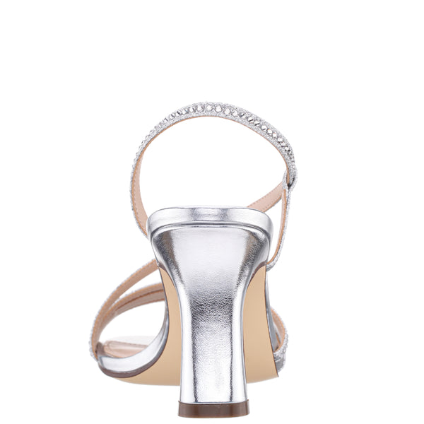 An asymmetrical slingback sandal designed to enhance any look. Sparkling crystal-adorned straps wrap gracefully around the foot and heel, creating a stunning silhouette. Perfect for elegant evening events, stylish weddings, and special occasions, ABBI blends femininity and modernity for a versatile, statement-making style. Designed for both comfort and glamour, these slingback heels ensure you look and feel your best from day to night.