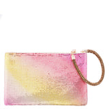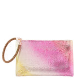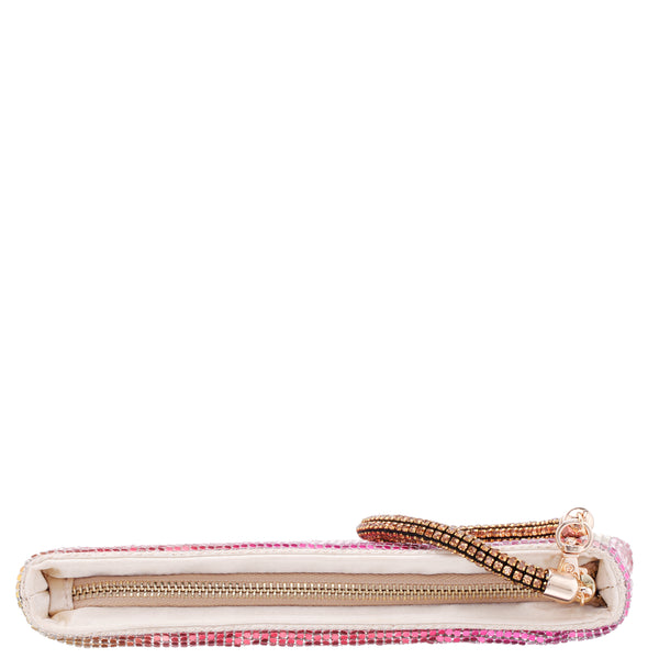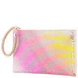 This mesh cosmetic bag with crystal wristlet strap is both functional and fashionable.