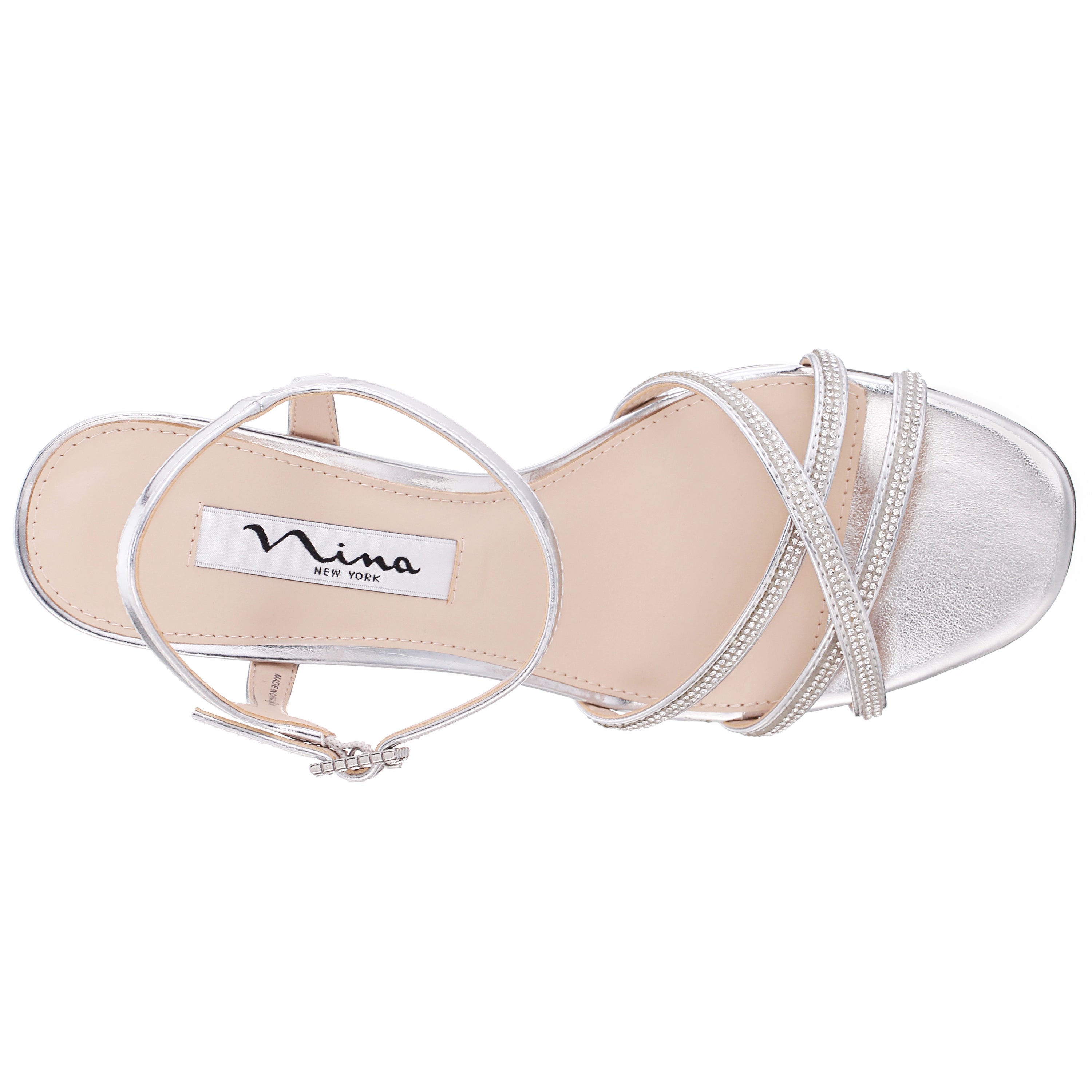 A sandal for all seasons and all occasions, Bobby by Nina will be a favorite in your shoe wardrobe. Delicate and modern all at once, this mid-heel sandal with simple crystal criss-cross straps is elegant on the foot but not fussy.