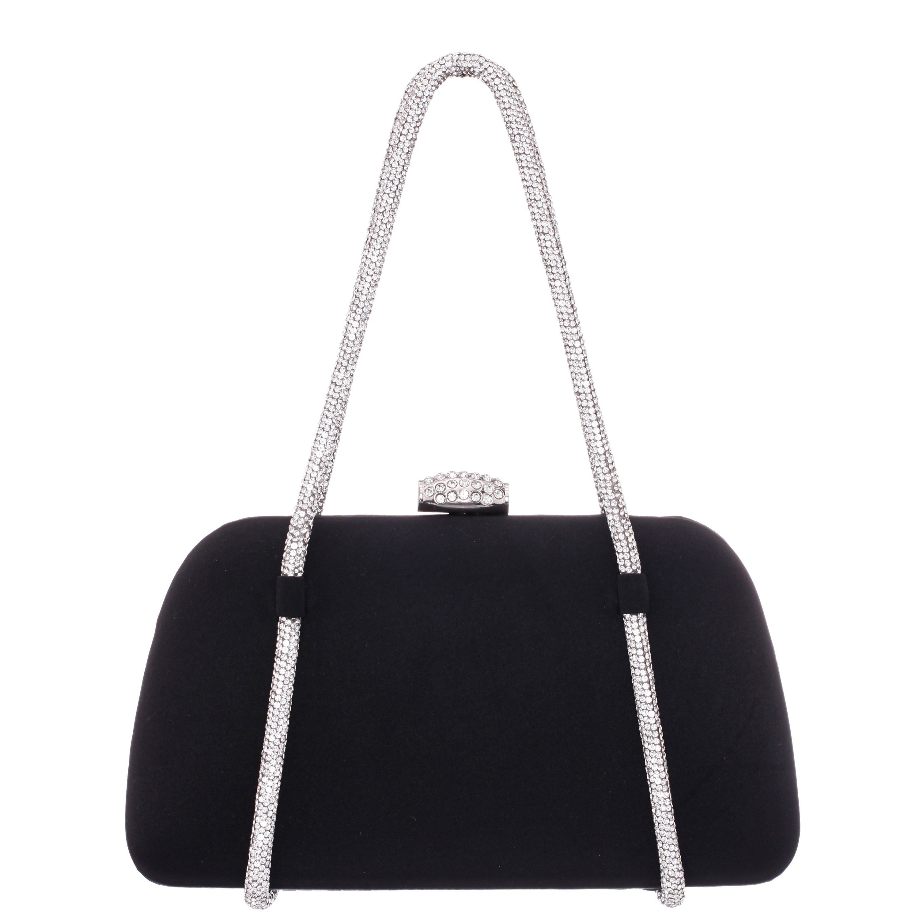 BLACK SATIN/GLASS CRYSTAL MINAUDIERE