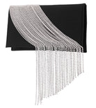 Draped chain over the front of an envelope clutch is the perfect balance between trendy and chic. Can fit all the essentials for a night out, and comes with drop in chain to go hands free