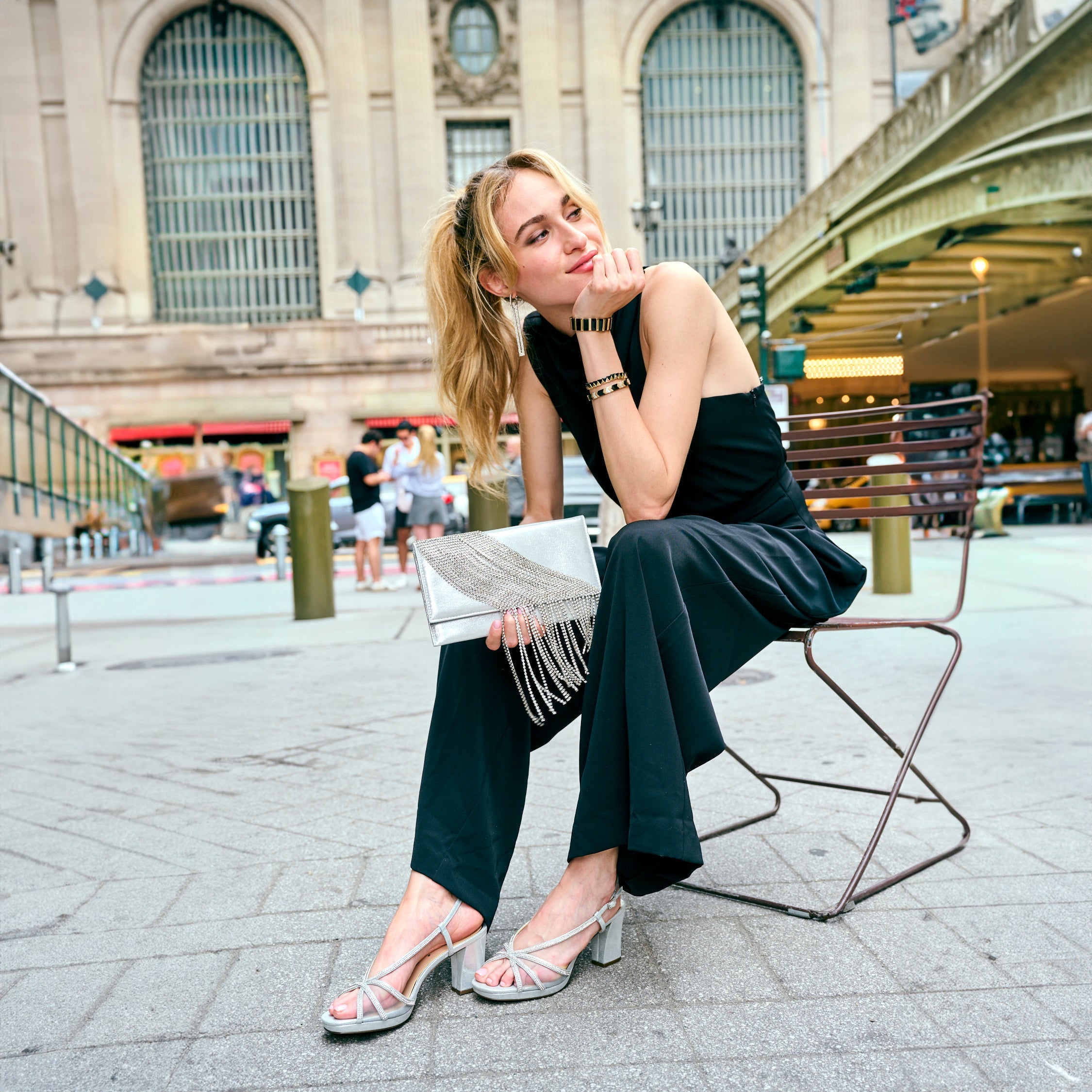 Description: Crystal Chain Slim Envelope ClutchMeasure Your Shoe Size