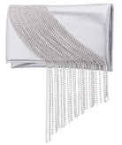 Draped chain over the front of an envelope clutch is the perfect balance between trendy and chic. Can fit all the essentials for a night out, and comes with drop in chain to go hands free
