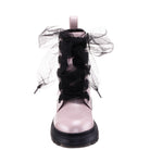 Give her wardrobe a dose of edge and bold expression with CHASSY by Nina — a fashion-forward take on the timeless combat boot. Glittering tulle laces bring a touch of sparkle to this tough-yet-sweet silhouette, while branded metal hardware and an inner zipper add effortless cool. With a cushioned memory foam insole and a flexible, non-slip outsole, CHASSY is built for comfort, confidence, and standout style. From weekend adventures to dressier occasions, these lace-up boots are a statement she’ll love to make.