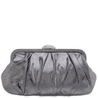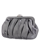 GUNMETAL PLEATED FRAME CLUTCH WITH CRYSTAL CLASP