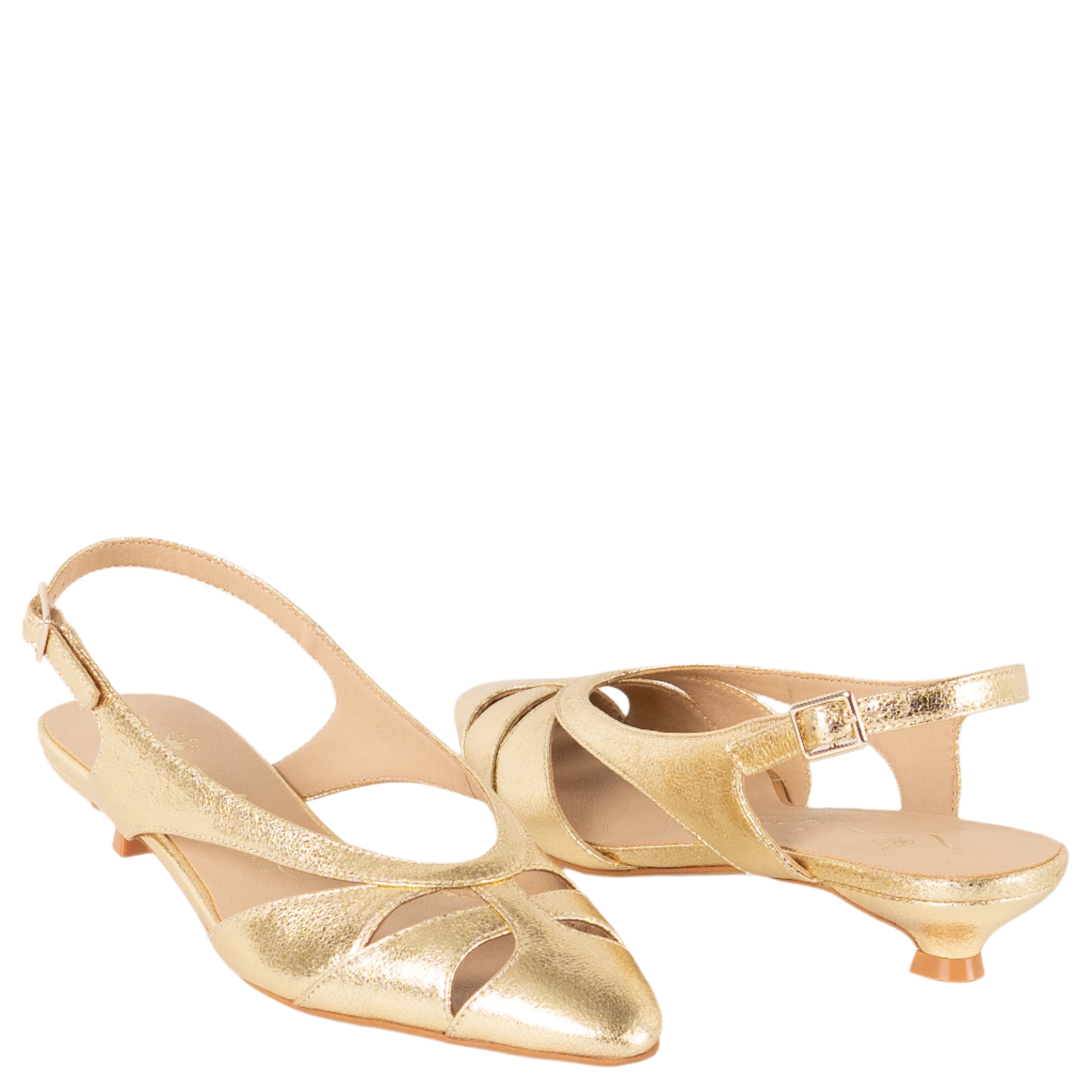 GOLD SLING BACK FLAT-SHOE PUMPS