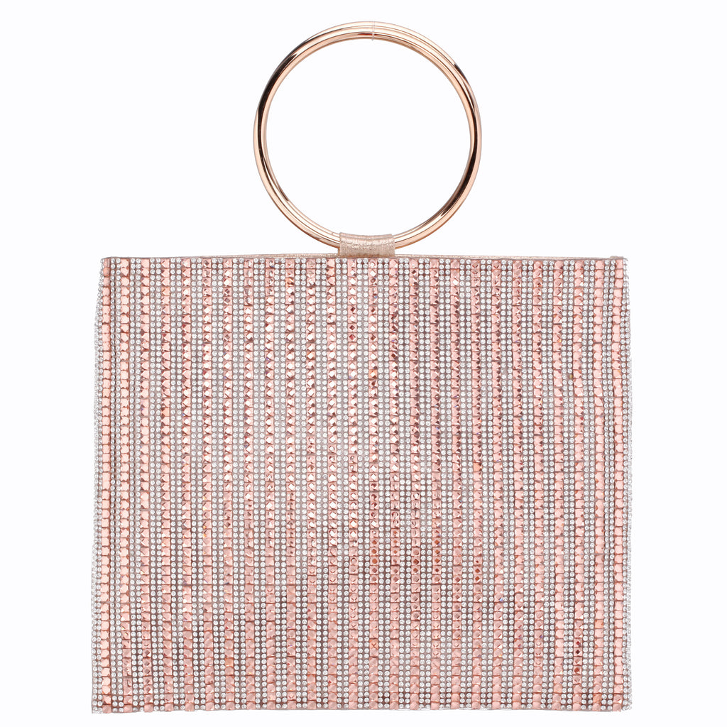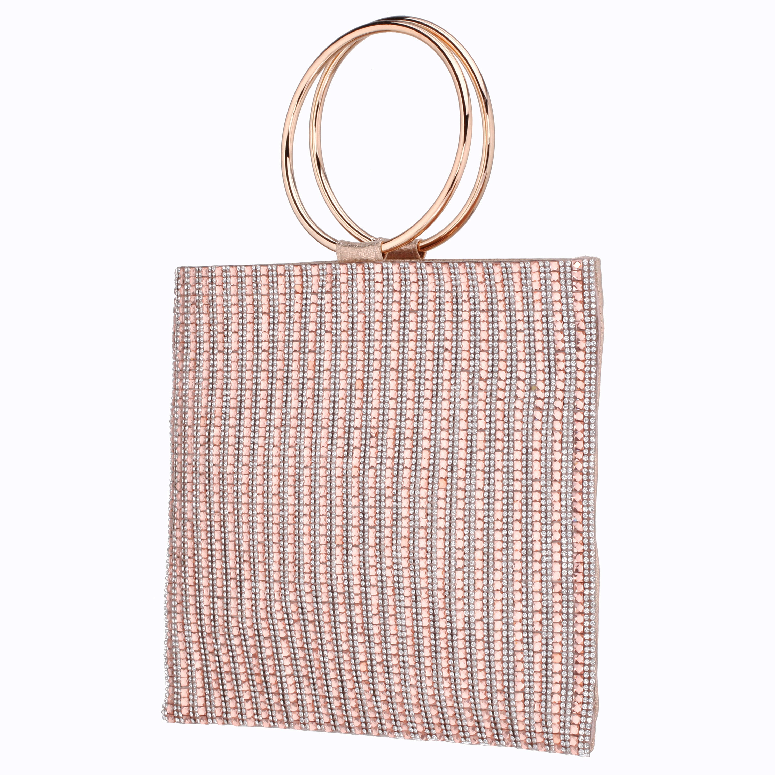 GLASS STONES EMBELLISHED DOUBLE RING TOTE