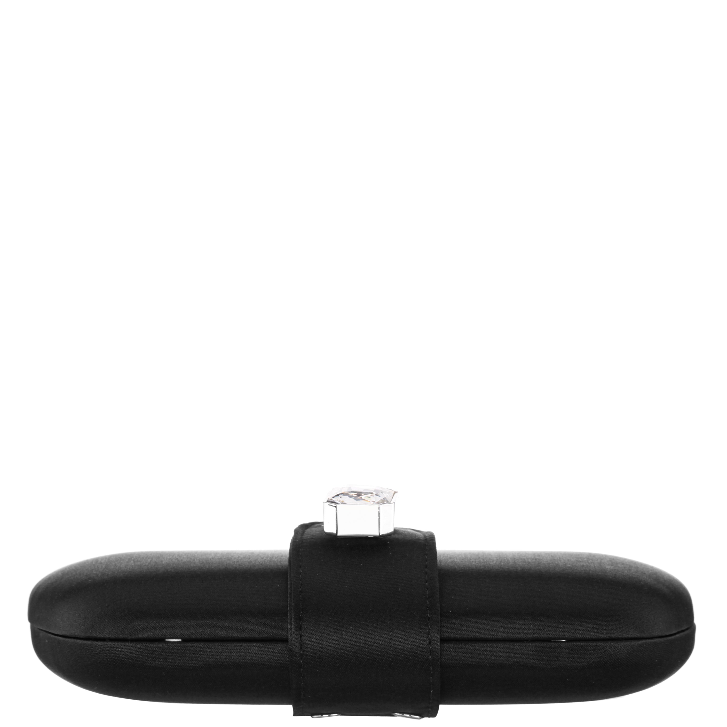 DANNI is the ultimate sleek and sophisticated minaudiere, designed to bring an element of glamour and elegance to any occasion. Featuring a large crystal-embellished tab closure, this clutch makes a bold statement while maintaining a classic and refined aesthetic. Whether you're attending a formal event, wedding, or cocktail party, this compact yet functional minaudiere is perfect for carrying your night-out essentials. The smooth satin or patent PU finish, paired with silver-tone hardware, exudes luxury, while the 18" drop-in curb chain strap offers the versatility of hands-free carrying. Inside, a satin synthetic fabric lining and back interior wall pocket provide both style and practicality. DANNI by Nina is the perfect blend of timeless sophistication and modern sparkle. For complementary styles, explore our satin shop or browse our newest arrivals.
