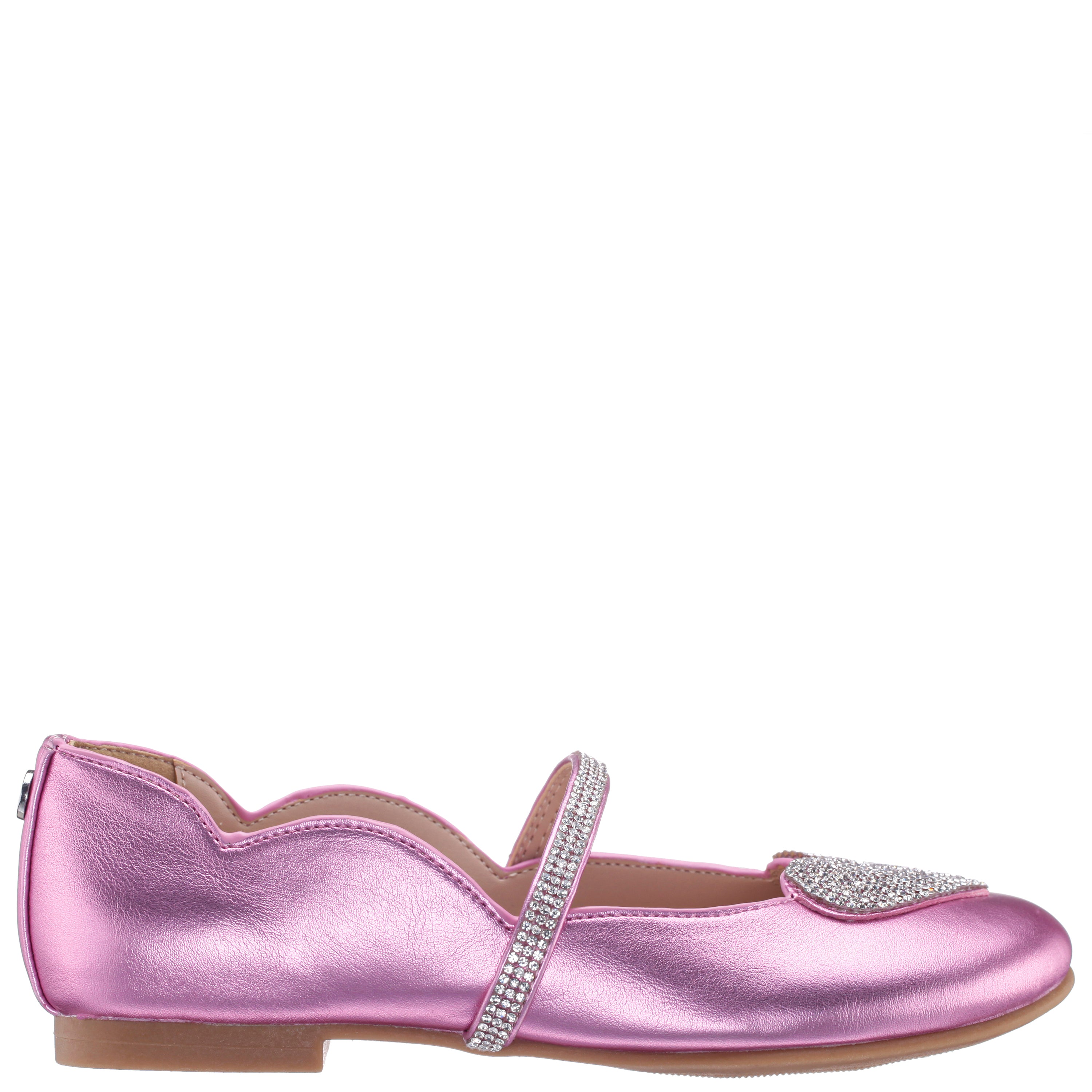PINK METALLIC BALLET FLATS WITH RHINESTONES