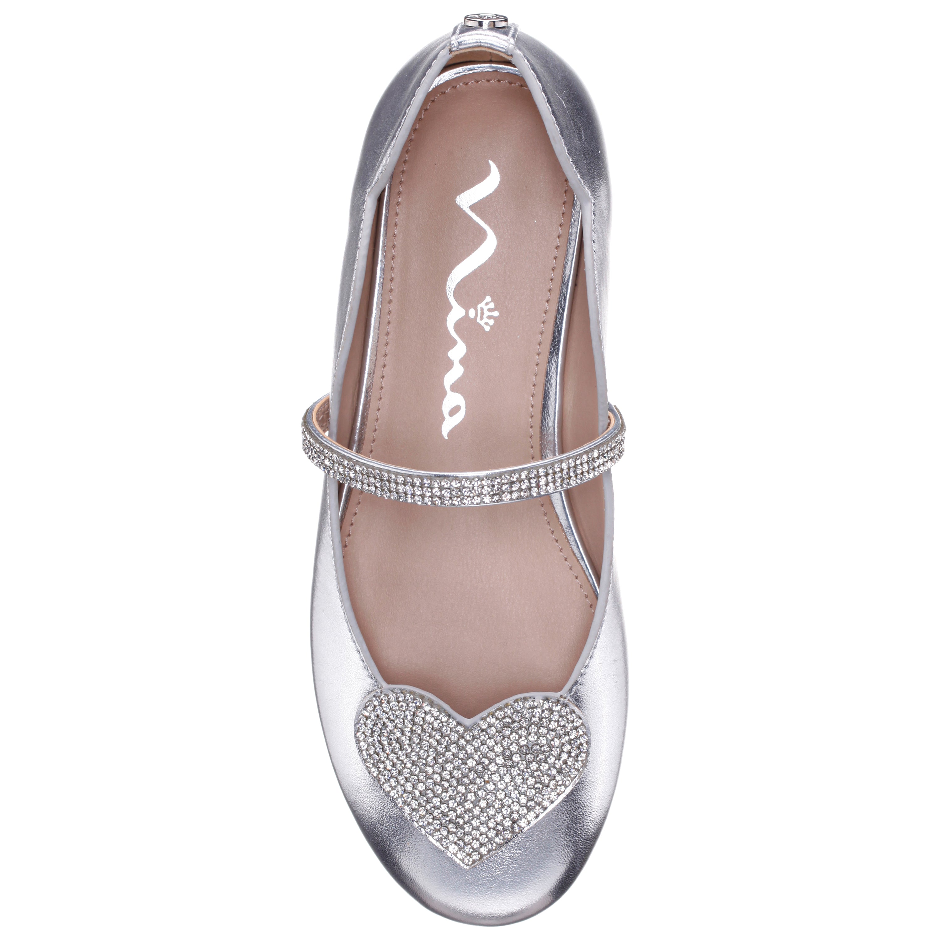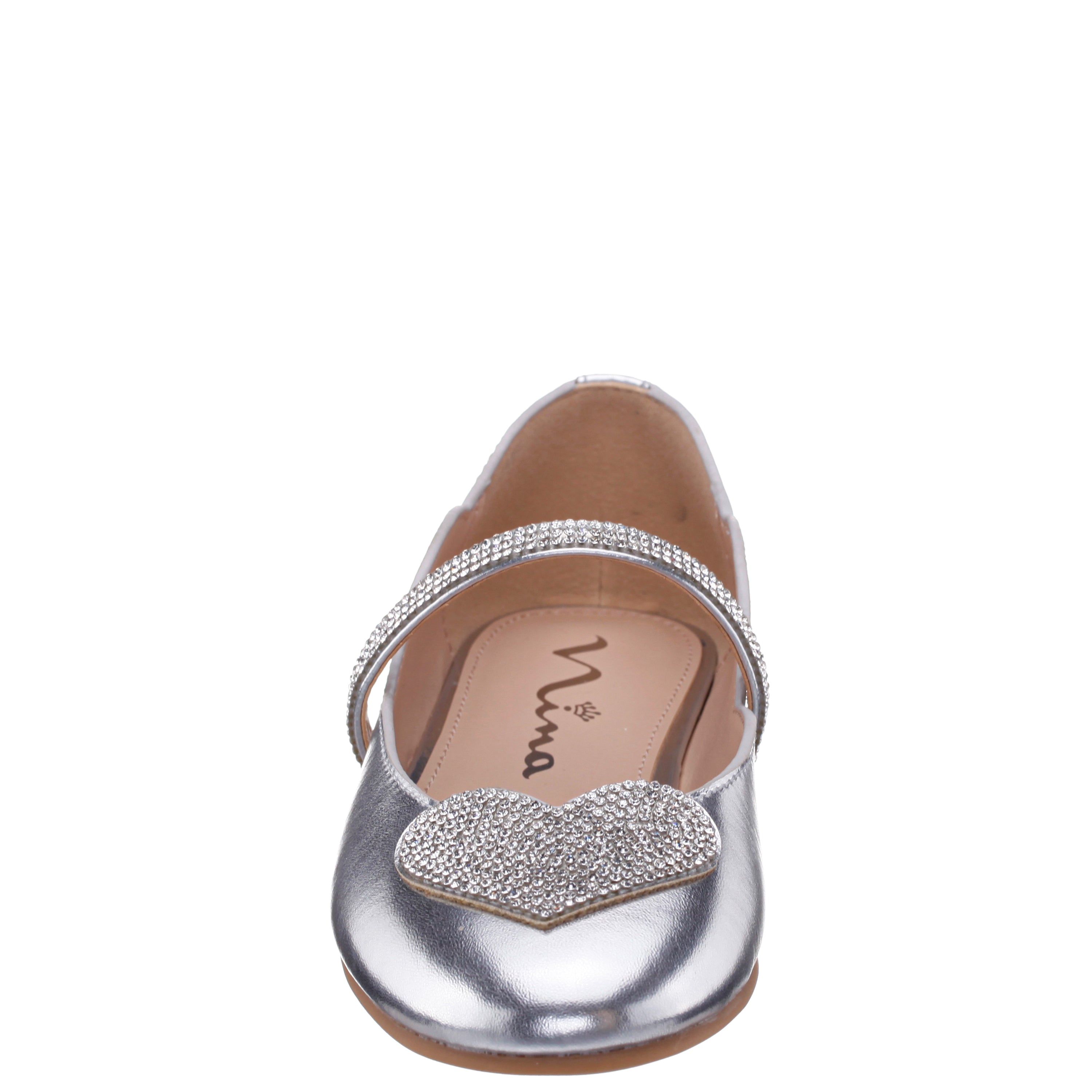 Shine with every step in the dazzling DIAZ by Nina Shoes, a ballet-inspired girls flat that’s as graceful as it is glamorous. Designed with a classic round toe and a sparkling crystal strap topped with a charming rhinestone heart, DIAZ adds just the right amount of sparkle to any outfit. An easy elastic strap offers a secure, comfy fit, while the plush memory foam insole keeps her feet happy all day. Finished with a flexible non-slip sole, this sweet style is perfect for dress-up days or everyday magic.