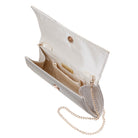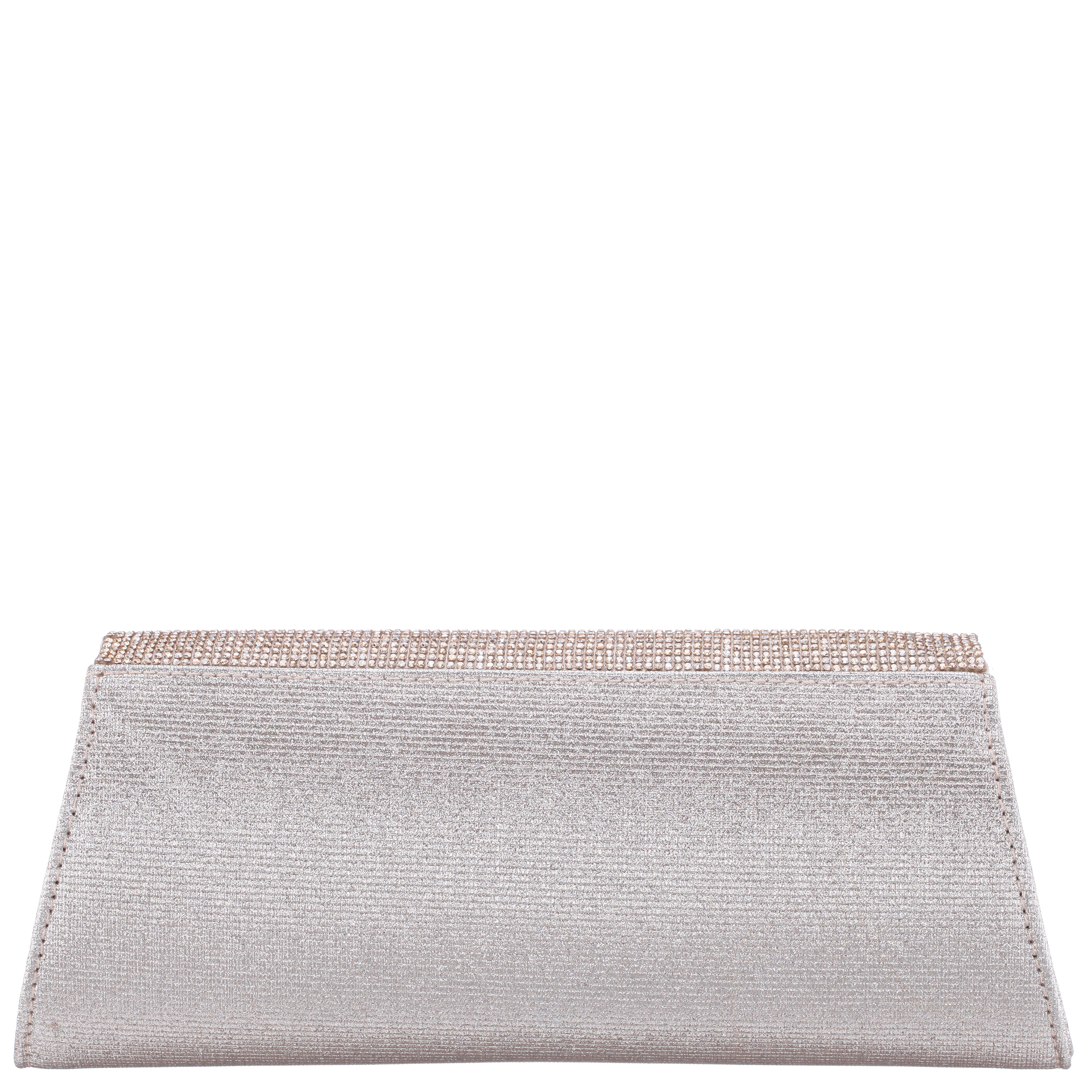 ENID is a sleek and sophisticated slim clutch, designed to add a touch of glamour to your evening ensemble. Featuring an elegantly curved flap adorned with crystal embellishments, this clutch radiates refined luxury. The combination of pleated metallic fabric, satin, and glass crystal accents creates a luminous and textured look, perfect for weddings, galas, and formal occasions. The compact yet functional design ensures you can carry your essentials with ease, while the versatile carrying options allow you to use it as a handheld clutch or wear it as a shoulder bag with the 18" drop-length flat curb chain strap. Inside, a satin synthetic fabric lining and back interior wall pocket provide both style and practicality. Secured with a magnetic snap closure, ENID by Nina is a timeless statement piece that brings effortless elegance to any outfit. For complementary styles, explore our satin shop or browse our newest arrivals.