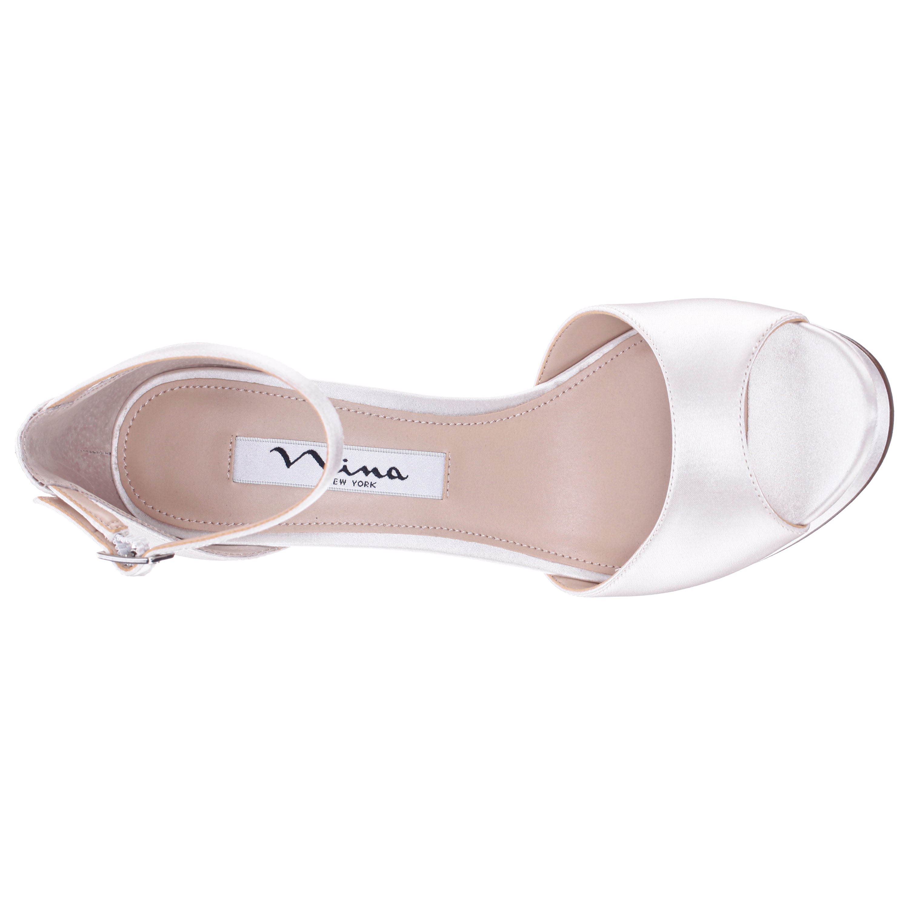 IVORY SATIN STILETTO PLATFORM SANDALS WITH ANKLE-STRAP