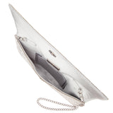 The KIMORA by Nina is the epitome of glamour, designed to make every occasion sparkle. This allover crystal-encrusted envelope clutch delivers a dazzling statement with its brilliant glass crystal embellishments, catching the light from every angle. Its sleek, structured silhouette offers a contemporary edge, while the magnetic snap closure ensures both style and security. The satin-lined interior includes a back wall pocket for effortless organization of your essentials. Carry it as a clutch for an elegant touch, or drape it over your shoulder with the 22" flat curb chain strap for a hands-free look. Whether you're attending a wedding, gala, or night out, the KIMORA ensures you shine with every step. For complementary styles, explore our satin shop or browse our newest arrivals.