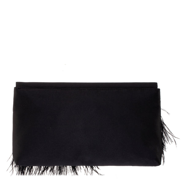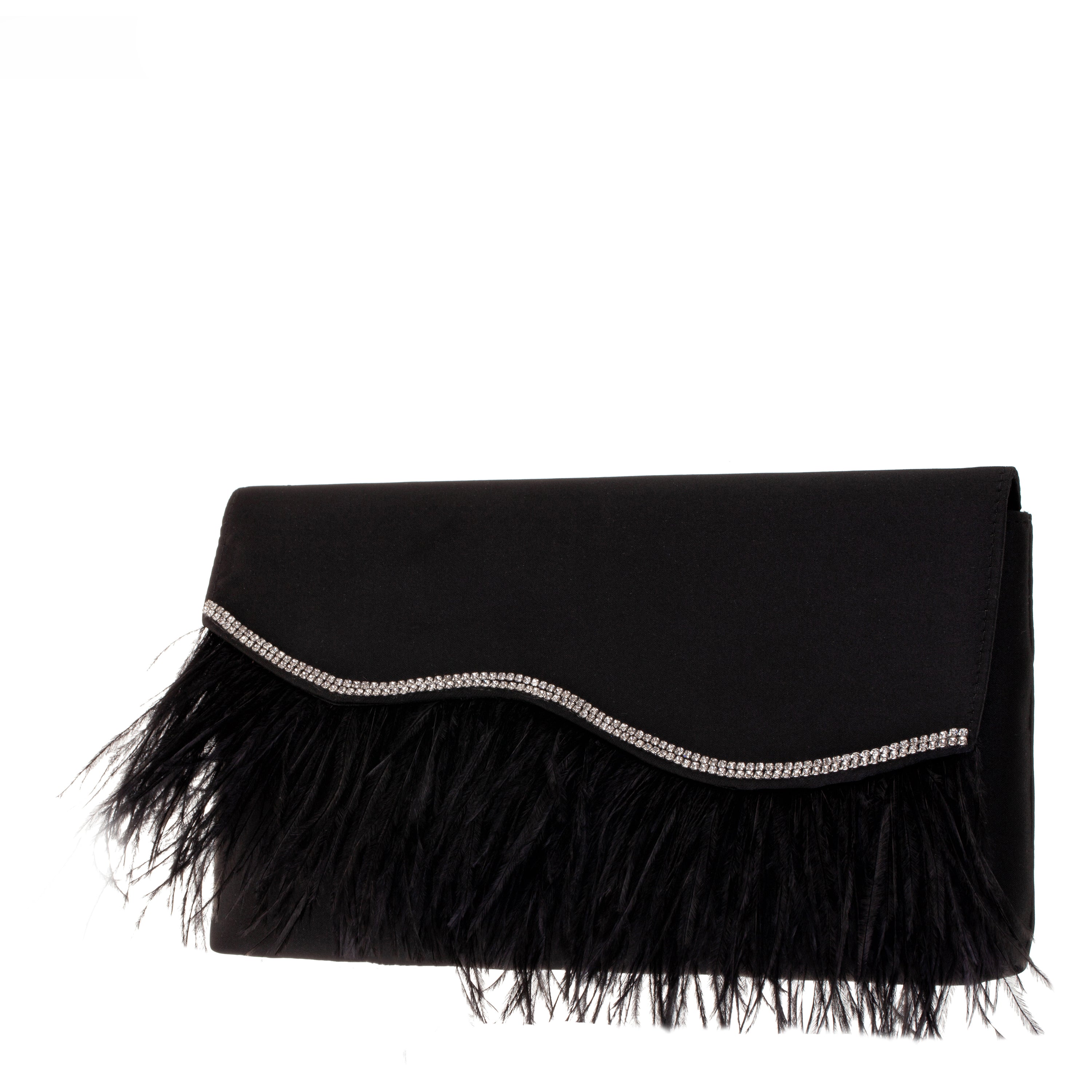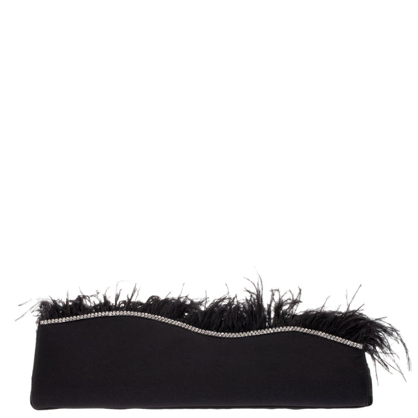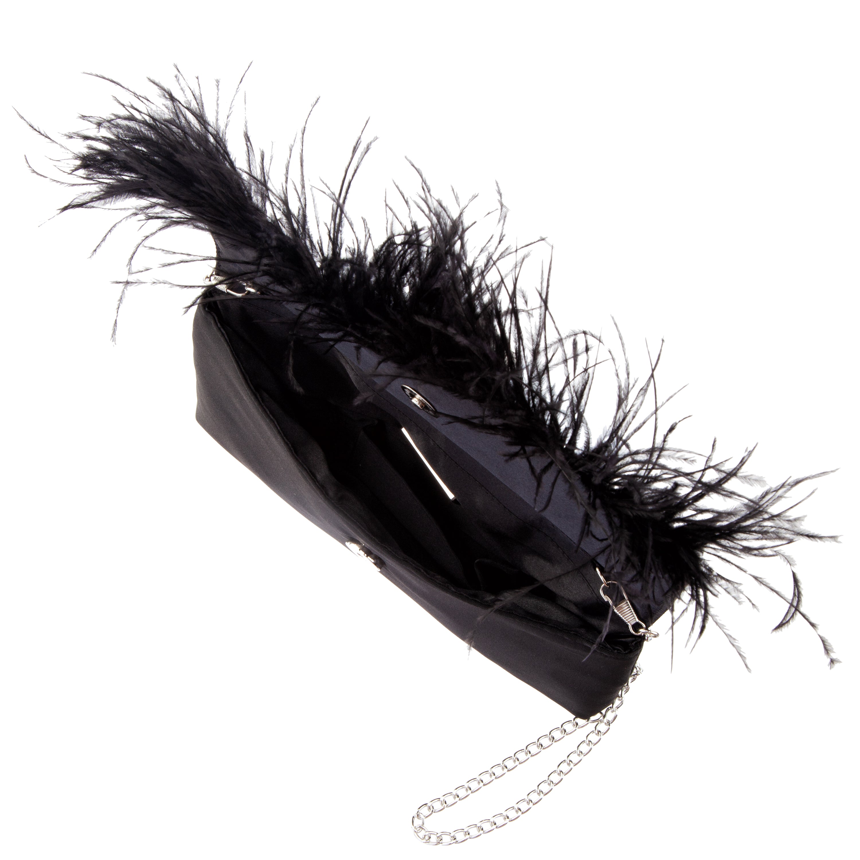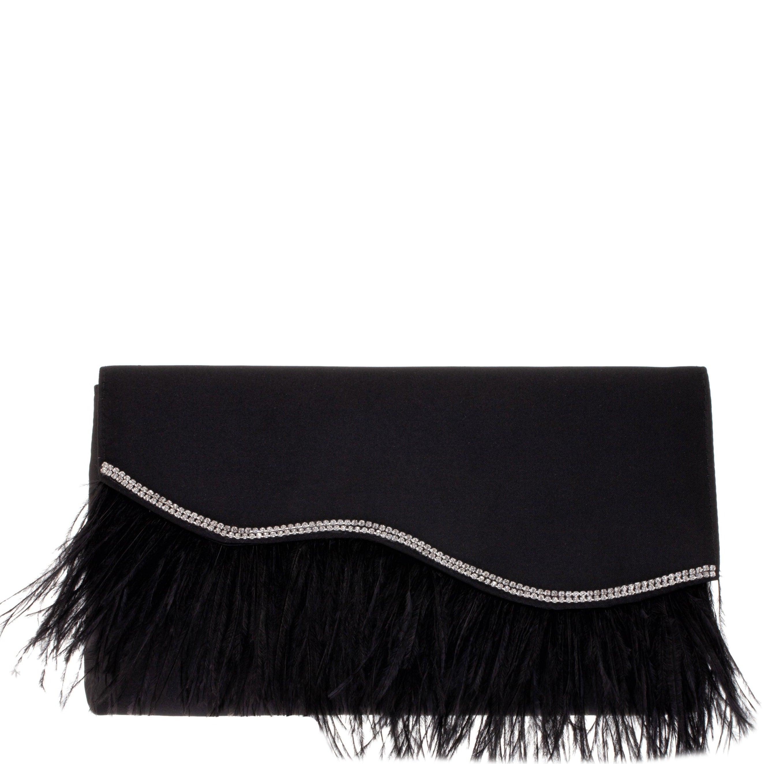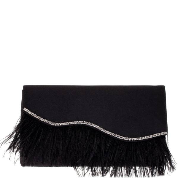 Flirty and Fun, Curved Crystal Detail Flap Clutch with Feathers!