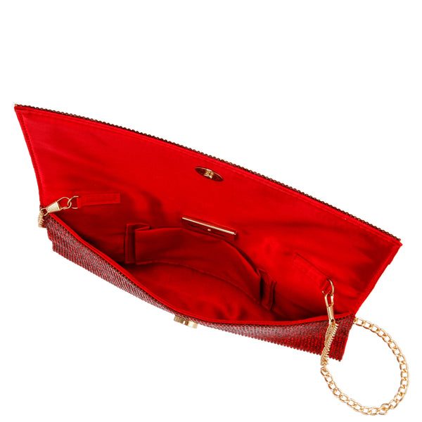 SIAM RED CRYSTAL BEADED ENVELOPE CLUTCH